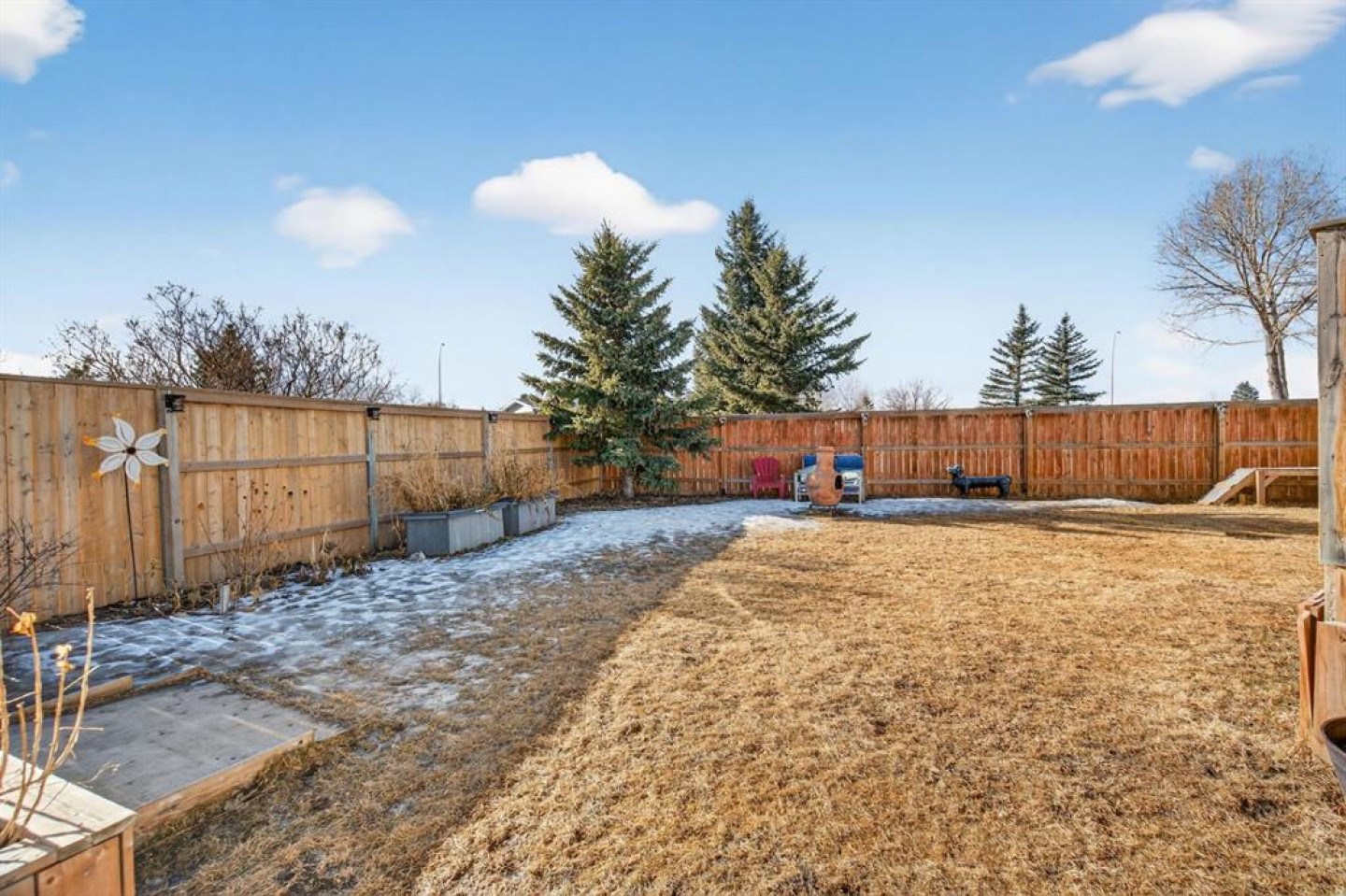 Welcome to Homestead Acres, a sought-after, 50+ adult living community in High River. This affordable, well-cared-for 1997-built home at 443 Homestead Trail offers comfort, convenience, and a fantastic setting. Pride of ownership is evident throughout, with recent updates including a perennial garden, recent painting, new lighting and professional levelling. The bright, open living room and kitchen create an inviting space for everyday living and relaxed entertaining. The bedrooms provide flexibility for visiting family, hobbies, or a home office, with the primary bedroom featuring a private 4-piece ensuite. Enjoy the privacy of one of the largest fully-fenced yards in the park, with a sunny southern exposure—ideal for gardening or simply relaxing outdoors. The front yard is also fenced adding security and comfort if you have dog(s). A large green space just beyond the yard offers a beautiful, open view and easy access to walking paths and natural surroundings. With so much to offer at an excellent price, this home is a wonderful opportunity to enjoy comfortable, low-maintenance living.