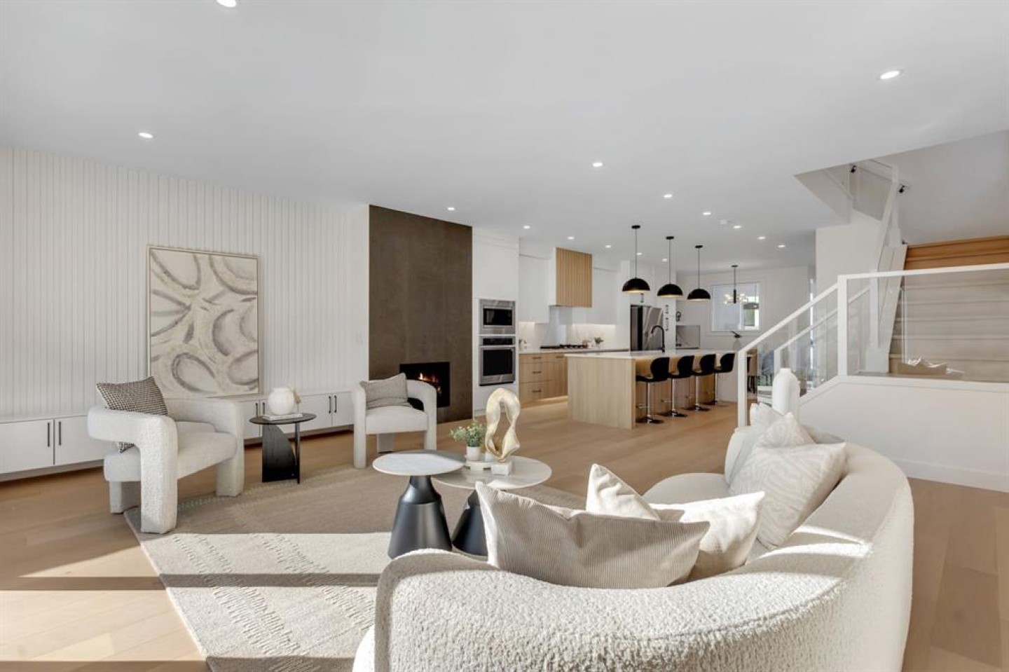 Step inside this brand-new semi-detached home in HIGHLAND PARK and you’ll immediately notice the thoughtful design that blends everyday function with modern luxury. With 4 beds, 3.5 baths, and a rare ATTACHED GARAGE, this home offers more than just a place to live—it’s a lifestyle upgrade in one of Calgary’s most central communities. The entryway opens into a bright main floor filled with natural light from oversized windows. A private main floor office just inside is the perfect spot for productivity – with a peek-through window into the main floor and extra large window for tons of natural light. The powder room is tucked away nicely near the office for clients or guests, with designer lighting and quartz countertop. Anchored by a large island with seating, the kitchen will definitely impress! It offers an abundance of storage and workspace, with quartz countertops, a gas cooktop, built-in oven, and high-end stainless appliances, it’s built for both serious cooking and casual entertaining. The open layout connects seamlessly to the dining and living room area, making it easy to host friends for dinner or enjoy family meals without missing a beat. Transom windows overlook this open area for more natural light, and a sleek gas fireplace with full height custom grey tile surround guides your eye to the built-in media centre with wood slat feature wall. Upstairs you’ll find the primary retreat is a private escape, featuring a large walk-in closet and a spa-inspired ensuite with a deep soaker tub, double vanity, and tiled shower with STEAM SHOWER rough-in. Two additional bedrooms, each with their own WALK-IN CLOSETS, share a stylish 4-piece bathroom. An upstairs laundry room adds to the everyday functionality. The fully developed basement is all about versatility. There’s a spacious rec room complete with a WET BAR, R/I for a projector - ideal for movie nights, game day, or hosting guests. A fourth bedroom & full bathroom create a comfortable space for overnight visitors, older kids, or extended family. And thanks to the ATTACHED GARAGE, you’ll enjoy direct access into the basement, keeping you sheltered from the elements year-round with built-in cubbies & hooks for organization & convenience. Outside, a private SOUTH backyard with a deck & BBQ gas line extends your living space into the outdoors. Located in Highland Park, this home combines quiet residential living with incredible convenience. Confederation Park and its extensive pathways are nearby, offering the perfect setting for walks, runs, and family time. Local schools, playgrounds, and community amenities are within easy reach, and the central location makes commuting downtown or to the airport a breeze. Shopping, dining, and everyday essentials are minutes away along Centre Street and 16th Avenue.