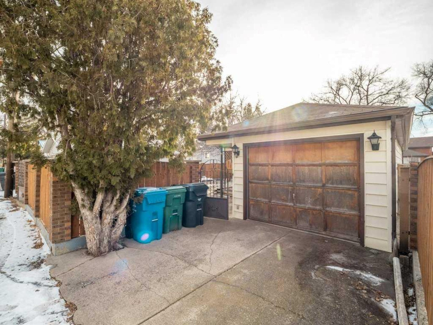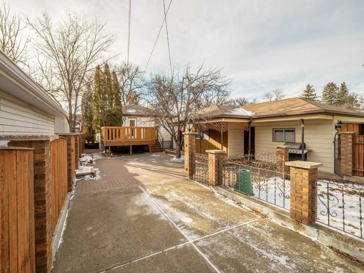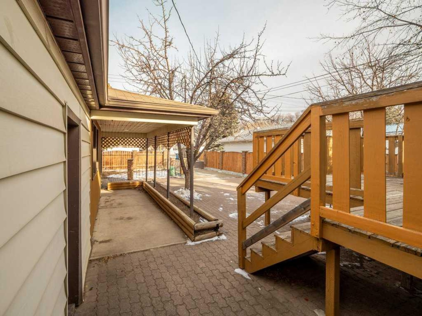 Excellent location for this south side bungalow close to the Lethbridge Regional Hospital. Kitchen has tile floor and updated appliances, the dishwasher is just over 1 yr. Livingroom and bedrooms have hardwood flooring, fireplace in livingroom has a gas line (disconnected). Back bedroom has access to a great size deck which overlooks a mature yard, great BBQ area, possible RV parking, extra parking (gates by alley can be moved in). Basement has a Rec Room with fireplace (gas line disconnected), kitchenette, bedroom, 3 piece bathroom, Laundry room with laundry tub, furnace, hot water tank. Upgrades to roof (approx 10 yrs), furnace motor in 2024. Detached garage has doors on each end. Furnace in garage has not been used. Great garage with potential for shop space.