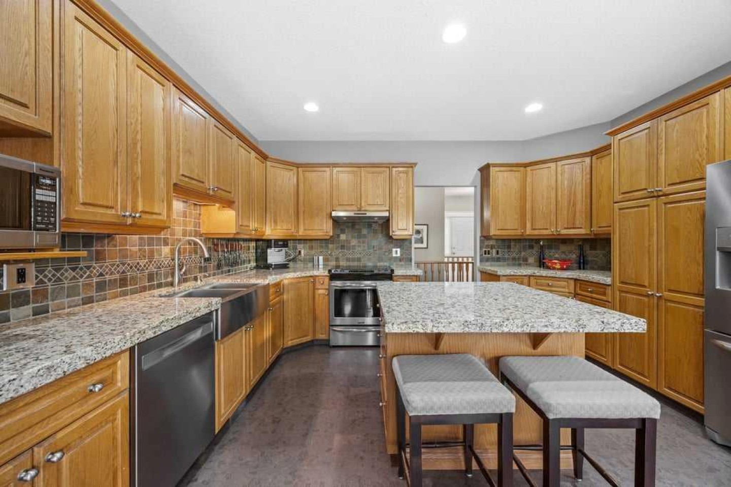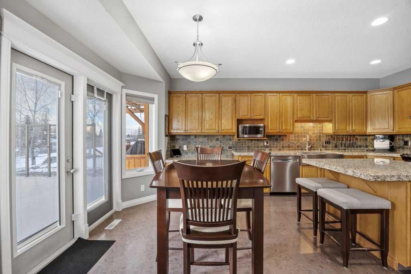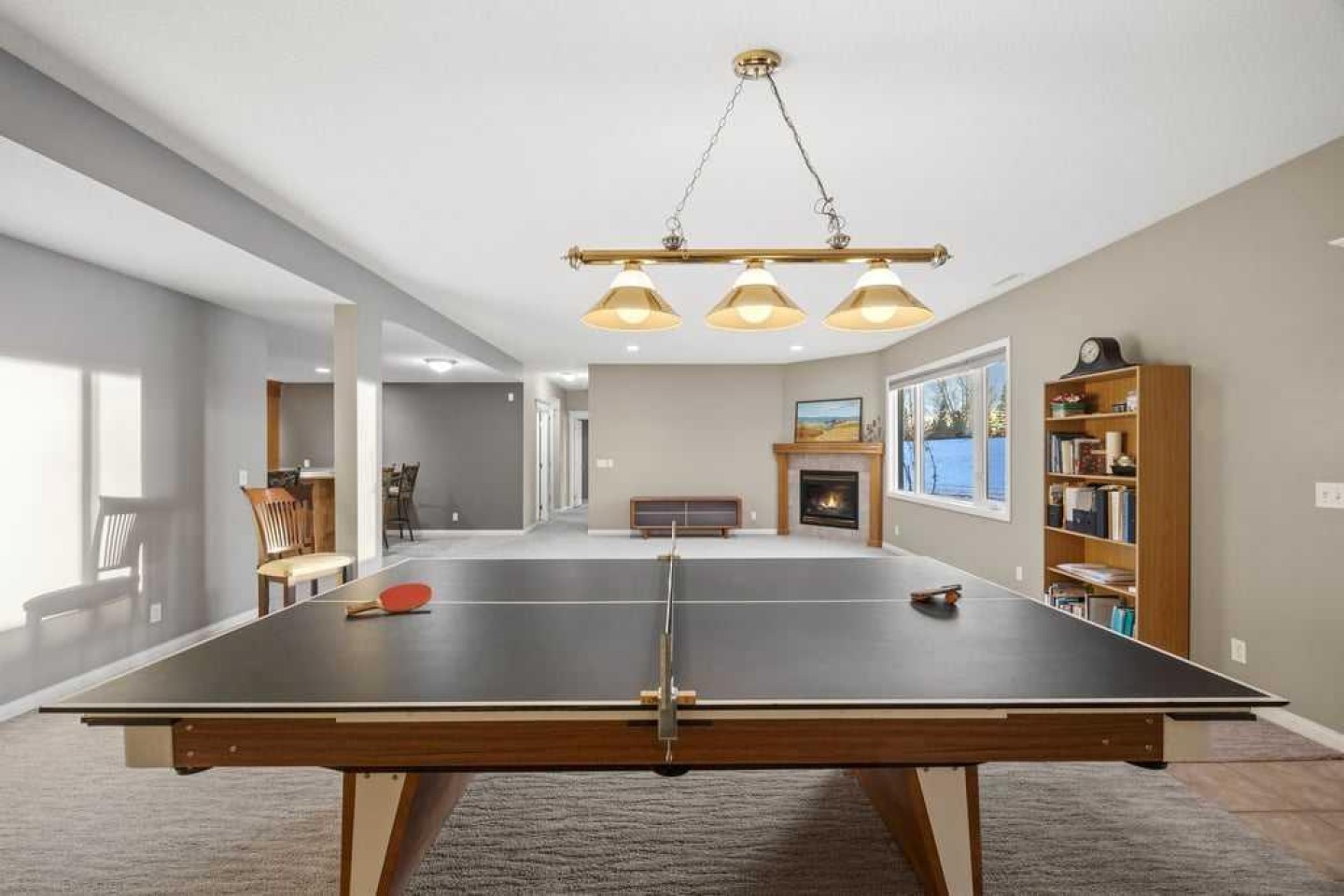 The in-floor heated lower level is filled with natural light thanks to oversized windows and offers outstanding versatility. This level includes two additional large bedrooms, a full bathroom, a flex room perfect for a home gym or office, and a spacious recreation and entertainment area complete with a wet bar. From here, step directly into a screened-in porch with 240-volt power in place for a future hot tub, creating a year-round retreat.