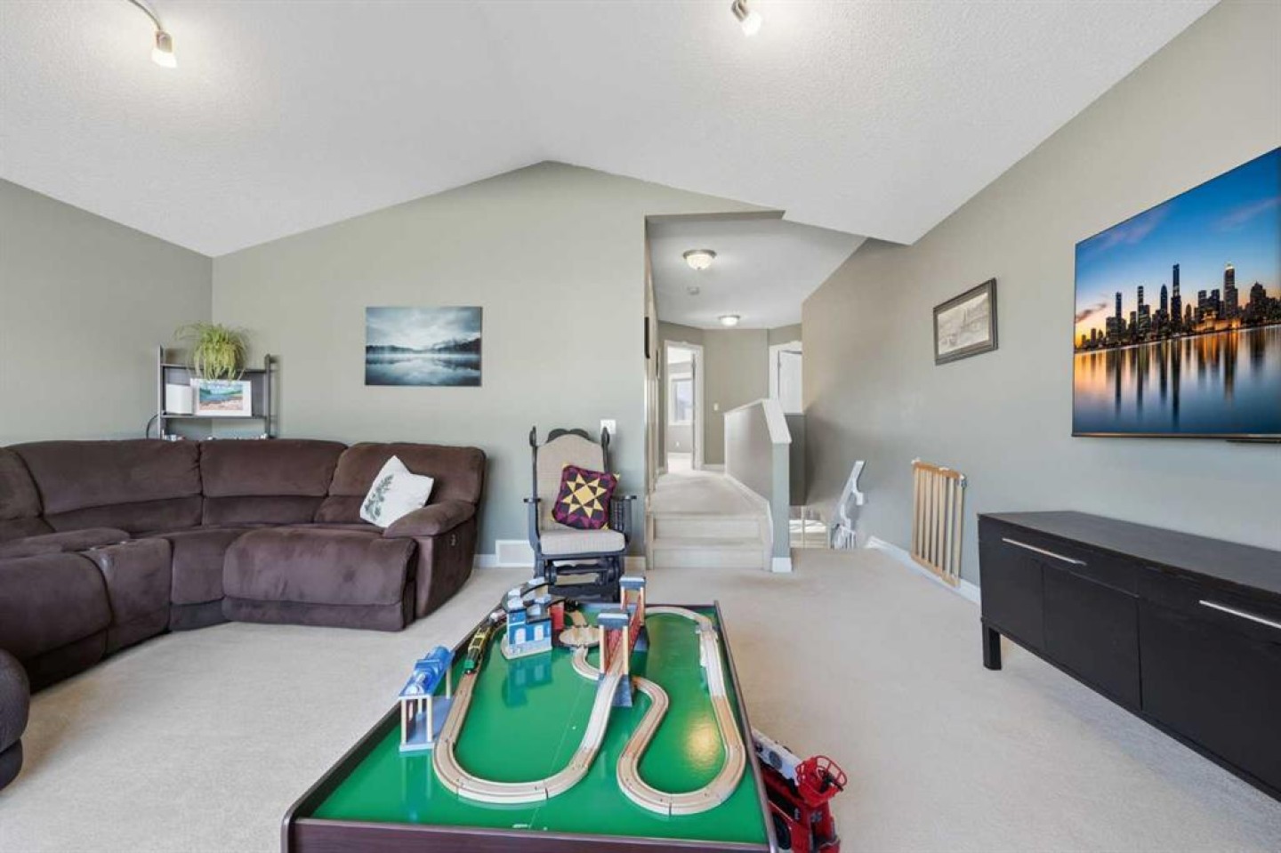 Welcome to the vibrant lake community of Westmere, where lifestyle, space, and convenience come together. This fully finished two-storey home with a large double attached garage is ideally located close to walking paths, schools, playgrounds, shopping, and amenities — with Chestermere Lake just minutes away and quick access to Calgary’s city centre. The main floor features a bright, open-concept layout, with natural light from large windows overlooking the south-facing backyard. The kitchen is thoughtfully designed with a corner pantry, central island with raised eating bar, ample cabinetry and counter space, and a generous adjoining dining area. The spacious living room features a cozy gas fireplace, while a discreetly tucked-away powder room and convenient main-floor laundry complete this level. Upstairs, you’ll find a large bonus room, a full 4-piece bathroom, and three well-sized bedrooms, including a spacious primary retreat with a walk-in closet and a gorgeous 4-piece ensuite featuring a stunning oversized corner shower. The fully finished basement offers incredible flexibility, with a fourth bedroom featuring a walk-in closet, a 4-piece bathroom, a comfortable living area, and a second kitchen, ideal for hosting extended family or guests. One of the standout features of this home is the oversized backyard, beautifully set up for outdoor enjoyment with a tiered deck and pergola. Backing onto a paved alley, the yard offers excellent access and space for RV or boat parking, or the opportunity to add a second garage if desired. This is an outstanding opportunity to own a spacious family home in a sought-after lake community that offers both small-town charm and easy access to the city.