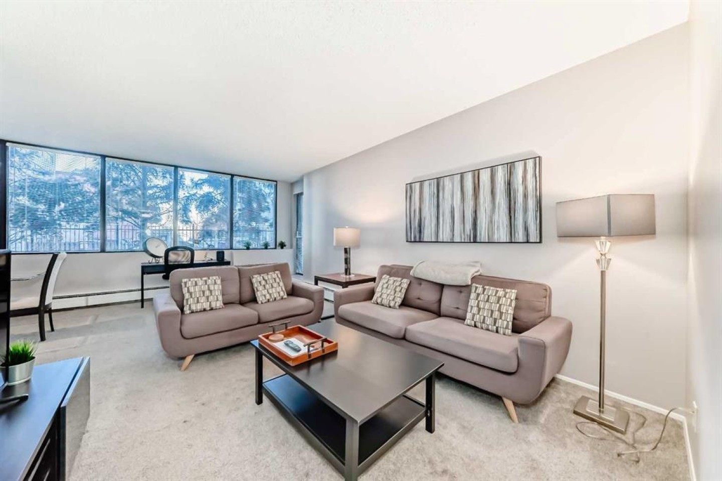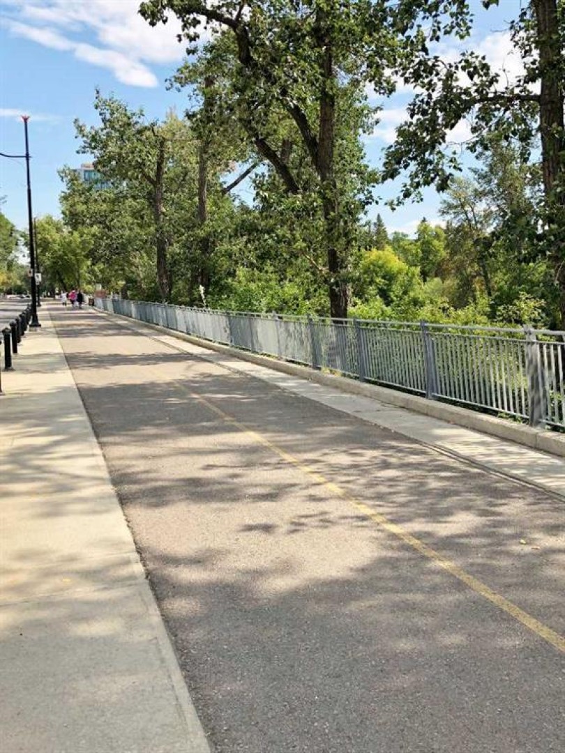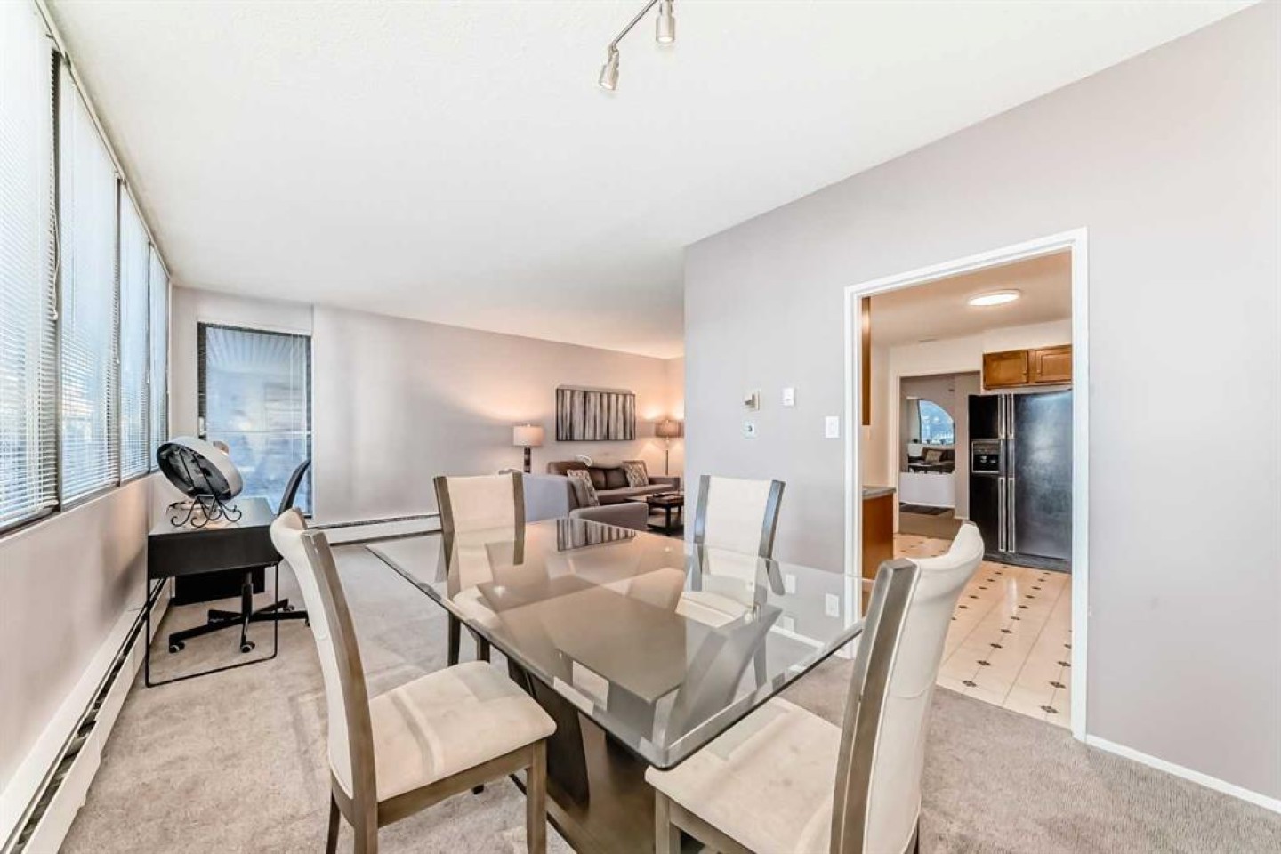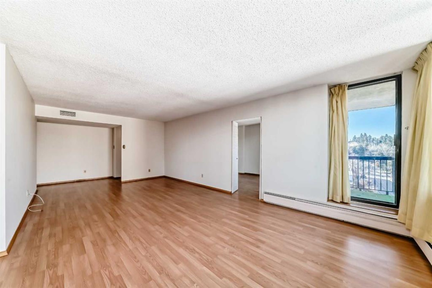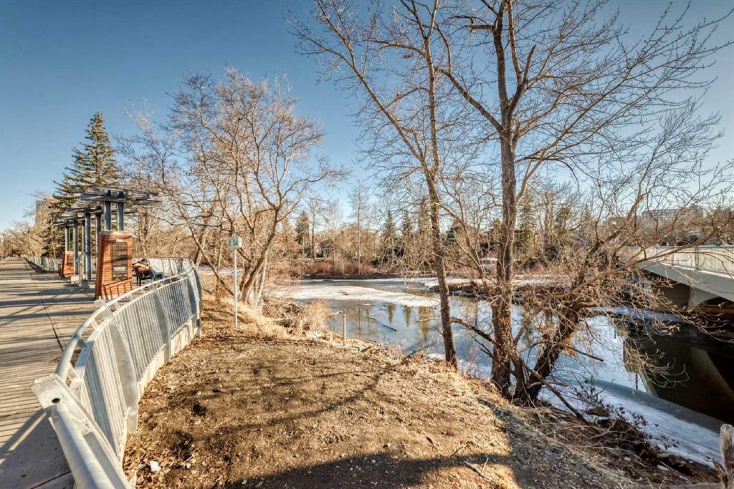 Spacious corner unit: 2 bedroom plus den with 2 full baths in Mission's prestigious Roxboro House! This well-maintained suite offers cityscape vistas and an open, bright layout. From the balcony and main living areas, you'll be greeted with a sweeping view of the city skyline along with some picturesque westerly scenes. Kitchen includes a desk area and a brand new refrigerator. In the generous primary bedroom, the cherry on top is the view of the river valley and the Elbow River. While it's lovely in the winter, it's a gorgeous green view to wake up to in the summer. At almost 1,500 sqft, all the rooms are amply sized and both bedrooms have double closets. The den is large enough to be converted to a third bedroom should you wish. Features in-suite storage, plus an assigned storage locker (#115 in the basement) so you have room for everything. Large parking stall in the heated parkade (#145) plus all the building's luxury facilities: huge, beautifully landscaped 4th floor sundeck, pool, hot tub, sauna and yoga area, party room, gym, games room, hobby workroom, guest suite, visitor parking, 24 hour security staff, and bike storage! Roxboro House is undergoing hallway modernization and the 6th floor has already been upgraded - the new look is elegant and stylish. This locale is perfect for walking or biking as you're conveniently near the Elbow River pathway, groceries, and amenities in the heart of Mission and 4th Street. Utilities, including electricity, are in the condo fee (except cable/phone).