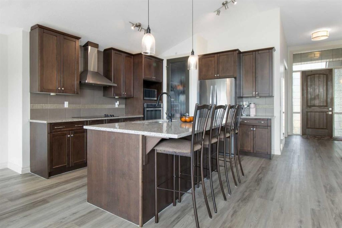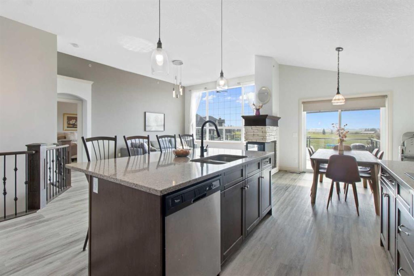 Step outside to the expanded raised deck—ideal for entertaining or relaxing—where you can enjoy unobstructed views and stunning sunsets. Low-maintenance landscaping and a fully fenced yard complete the scene. The finished walkout basement adds a large bedroom, full bathroom, and a welcoming rec room that opens to the backyard. An attached oversized double garage provides ample space for vehicles, storage, and a workshop. Located in the golf-course community of Lakes of Muirfield, just 20 minutes from Calgary, Airdrie, and Strathmore.