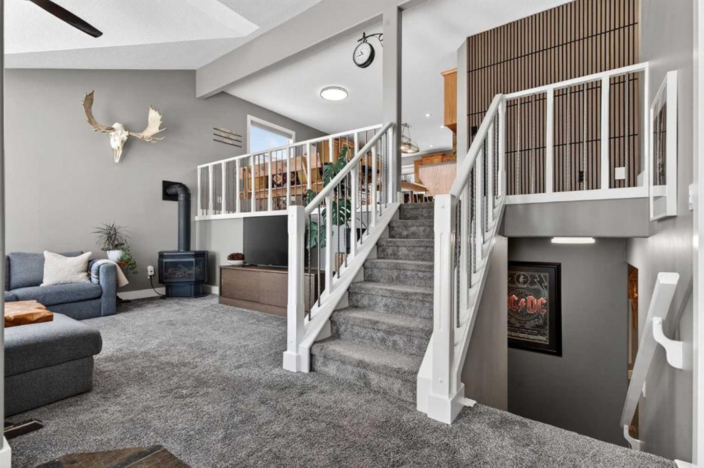 Located in the thriving community of Diamond Valley, this fully developed three-level split offers the space, functionality, and lifestyle today’s families are searching for. Thoughtfully designed and beautifully maintained, this four-bedroom home delivers multiple living areas, flexible spaces, and a yard that truly embraces foothills living. An oversized double attached garage welcomes you home, leading into a spacious entryway and a bright main living room where vaulted ceilings, abundant natural light, and a cozy gas fireplace create an immediate sense of warmth and openness. Up a short flight of stairs, the kitchen serves as the heart of the home. Featuring a large central island, stainless steel appliances (including a newer refrigerator with water line), ample cabinetry, and generous prep space, this layout is ideal for entertaining and everyday living alike. The adjacent dining area comfortably accommodates family dinners, homework time, and casual gatherings. The upper level offers a private primary retreat complete with a beautifully updated ensuite showcasing a walk-in shower. Two additional bedrooms and a well-appointed four-piece bathroom complete this level.The fully developed lower level provides exceptional flexibility with two additional generously sized bedrooms, a den, a three-piece bathroom, and a spacious recreation room—perfect for movie nights, teenagers, guests, or a home office setup. A gas line is already in place for a future fireplace, and the crawl space offers substantial additional storage.Step outside to a backyard designed for real life. Upper and lower decks create multiple outdoor living spaces, with back alley access, storage sheds, ample green space, including a charming chicken coop, adding both character and practicality. There’s room to garden, play, entertain, and grow. Ideally located within walking distance to schools, parks, and local amenities, with an easy commute to Calgary and quick access west to the mountains, this home offers the perfect blend of small-town connection and everyday convenience. A move-in ready home with space to live, gather, and thrive—this is Diamond Valley living at its best.