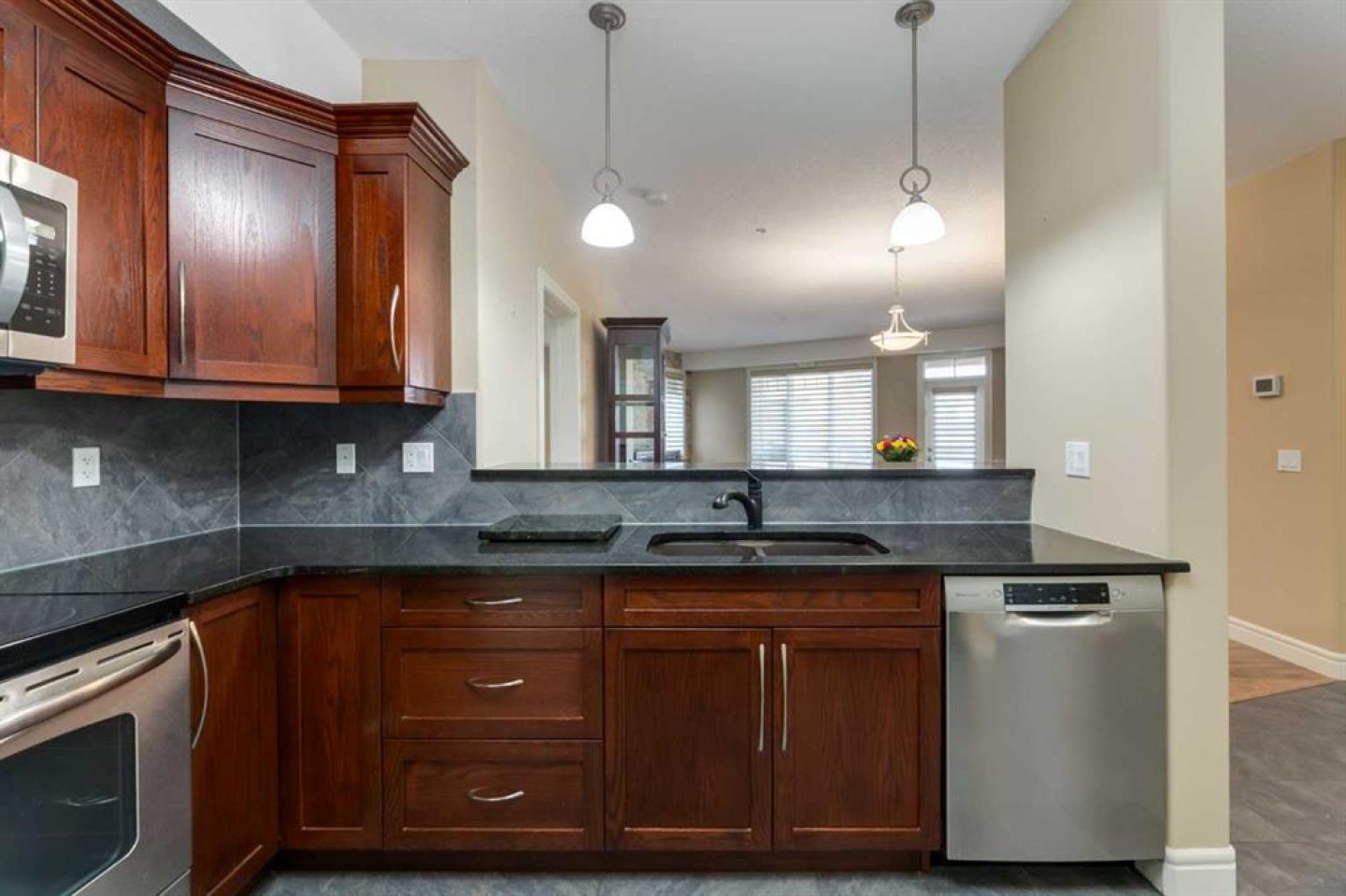 ENJOY outstanding amenities at SANDERSON RIDGE on Fish Creek Park! The first time on the market, this third floor suite is spacious and bright with a neutral decor. It offers TWO bedrooms, TWO bathrooms, TWO oversized titled parking stalls with TWO locked storage rooms on P2. The sleeping areas are separated by the open kitchen, living and dining area layout. The large u-shaped kitchen includes a walk-in pantry, granite counters, eating bar, tile floors and stainless appliances. The living and dining rooms feature vinyl plank flooring custom stone feature wall with electric fireplace. The primary bedroom could accommodate a king bed, and includes a convenient 3-piece ensuite and walk-in closet. The second bedroom is adjacent to a 4-piece main bath and ensuite laundry room. The huge balcony, with gas BBQ hook-up, provides a scenic view of Fish Creek Park, providing direct access to enjoy nature with miles of trails. This highly sought after complex in the Evergreen community offers residents an extensive range of amenities and services, ranging from an indoor pool, fitness studio, bowling alley, theatre, wine cellar, billiards, workshop, guest suites, car washes, and onsite property manager. The monthly condo fee of $761.74 includes heat, air conditioning and other utilities for year round comfort. The neighbourhood offers abundant choice for shopping and restaurants, plus quick access to Stoney Trail. Living at Sanderson Ridge is an opportunity to become part of 40+ community with a luxury lifestyle in an outstanding location.