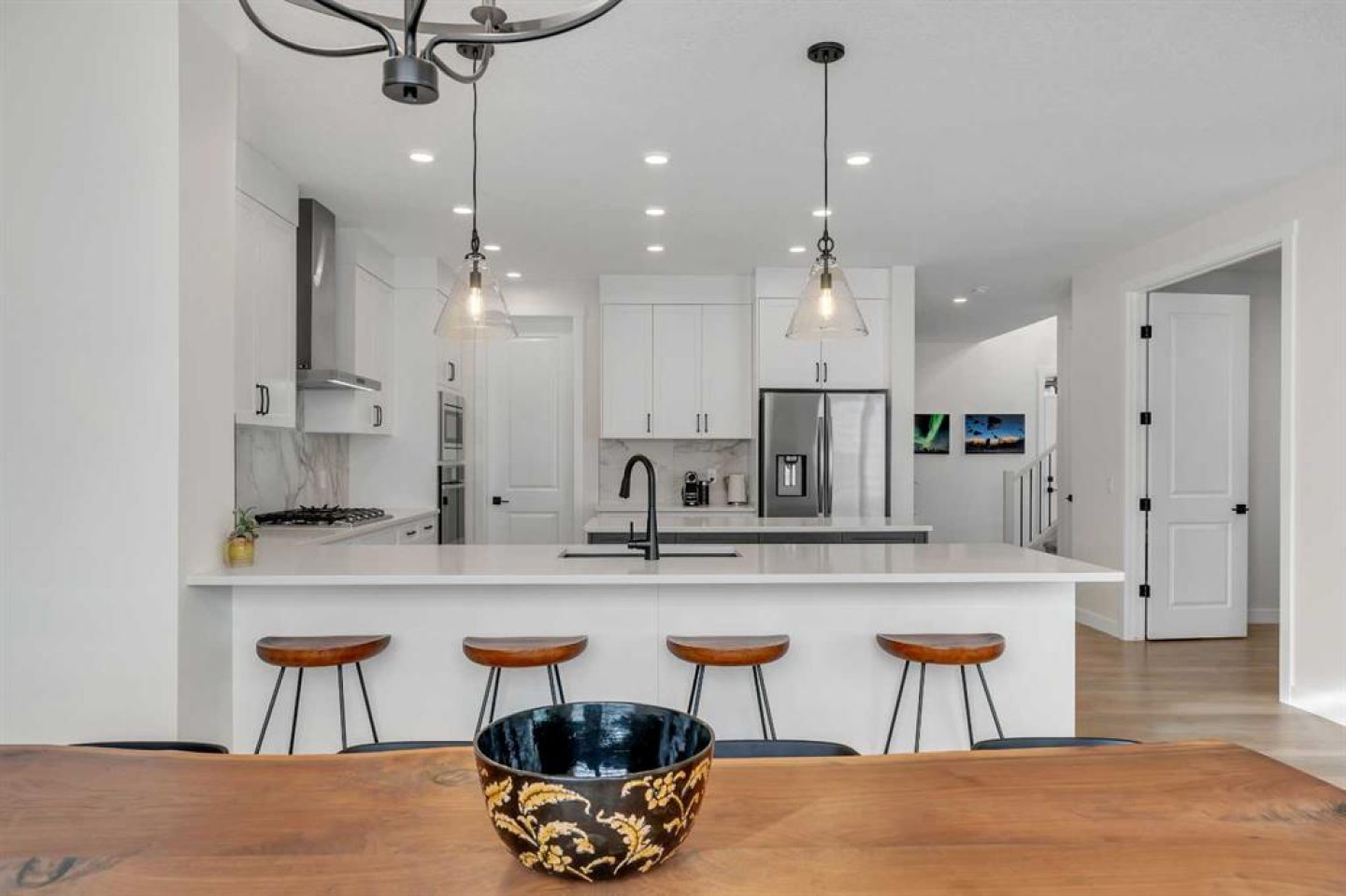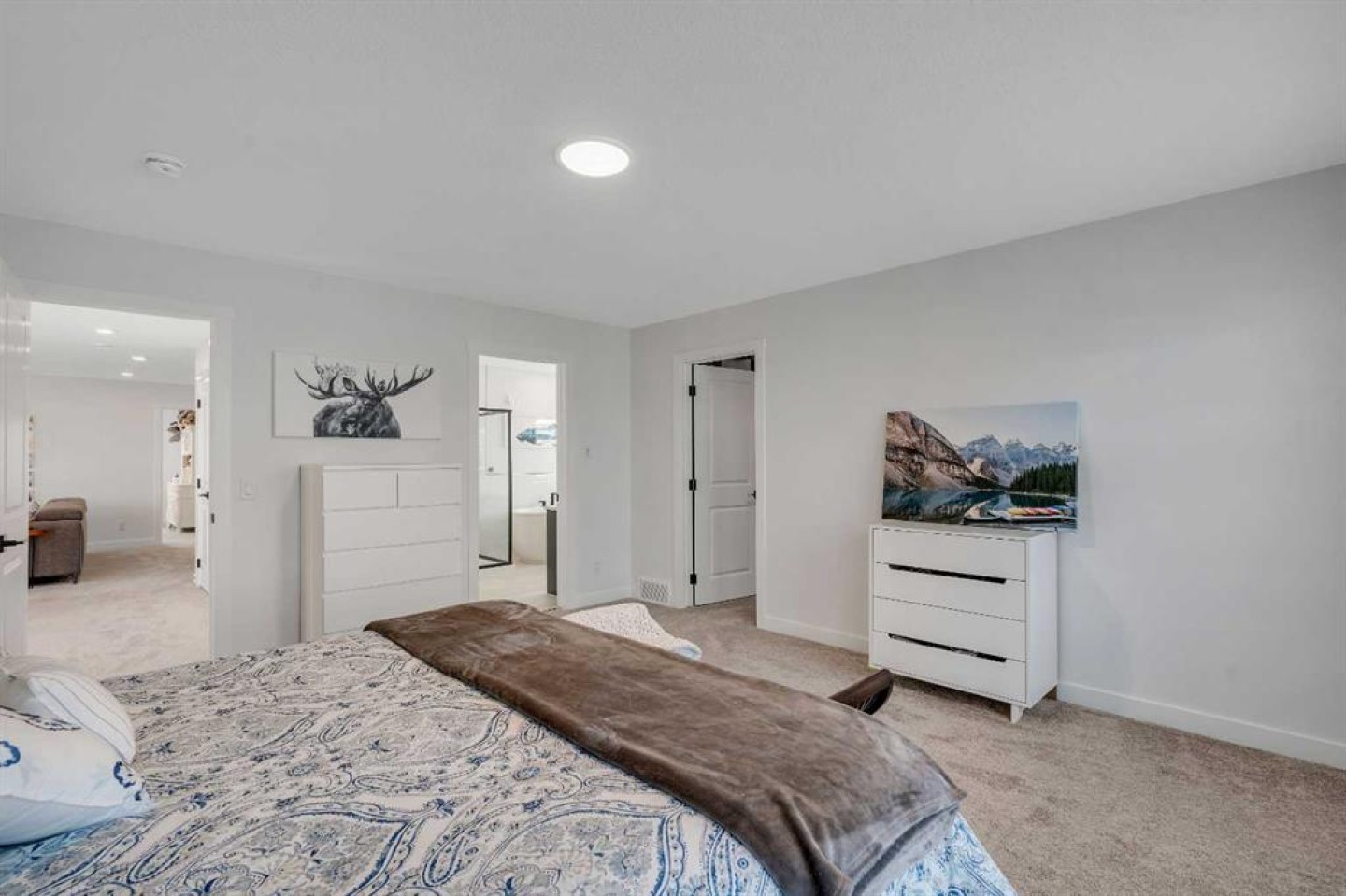 Welcome to 649 Sailfin Drive, located in the brand new lake community of Harmony just 10 minutes west of Calgary and approximately 30 minutes to the mountains, where you are buying more than just a home but a true lifestyle. This 2025 Daytona built home presents like new and features numerous upgrades throughout, all while being situated in one of the most desirable phases of Harmony within walking distance to the lake and community amenities. Offering over 2600 sq ft of living space with 3 bedrooms and 2.5 bathrooms, the layout is both functional and thoughtfully designed for families. The main floor welcomes you with a large foyer, private office with French doors, 2 piece powder room, and a spacious living room centred around a gas fireplace, perfect for family time or entertaining after a day at the lake. The dining area flows seamlessly into the chef’s kitchen, showcasing full height custom cabinetry, a gas range, built in wall oven and microwave, quartz countertops throughout, a large breakfast bar, and an oversized island with plenty of space for a growing family. This level is completed by a massive walk through pantry that connects to the mudroom with custom lockers and direct garage access, ideal for busy households. Upstairs you will find a large bonus room, 3 bedrooms, and a well planned layout. The primary bedroom measures approximately 14.5 by 15.6 ft and features a large walk in closet along with a spa inspired ensuite offering a double vanity, custom stand up shower, and standalone soaker tub. The second and third bedrooms are generously sized and each includes a large walk in closet. You will also find a spacious laundry room with sink and a full 4 piece bathroom on this level. Mechanical highlights include 2 high efficiency furnaces, 2 central A C systems, and a sump pump. Additional upgrades include a custom high end blind package throughout, railing upgrades, and many more. Why wait 12 months for a new home when you can move in today and save the GST. Set in the award winning community of Harmony with its 2 private lakes, world class golf at Mickelson National, extensive pathway system, playgrounds, and future village centre, this home offers an exceptional blend of comfort, quality, and lifestyle. Please book your private shwoing today.