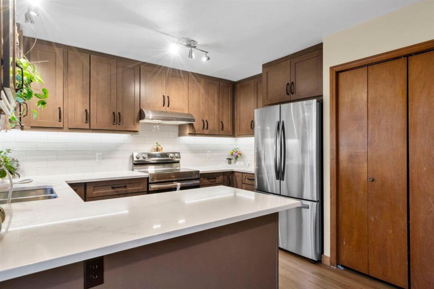 Outside, enjoy a large backyard and deck, perfect for summer gatherings or quiet mornings. The massive heated double garage offers excellent storage and peace of mind with recently replaced garage roofing, along with two additional parking stalls beside the garage for added convenience.