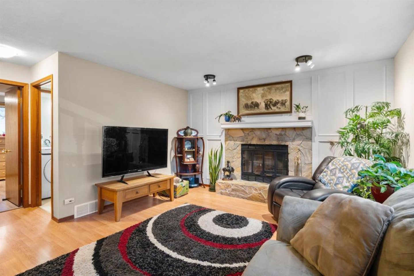Upstairs, you’ll find two generous bedrooms, including the primary, along with a tastefully renovated full bathroom finished with contemporary touches. The lower level offers a cozy family room centered around a wood-burning fireplace, plus a convenient laundry room, powder room, and a third large bedroom—ideal for guests, teens, or a home office.