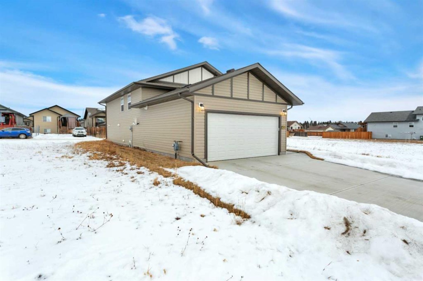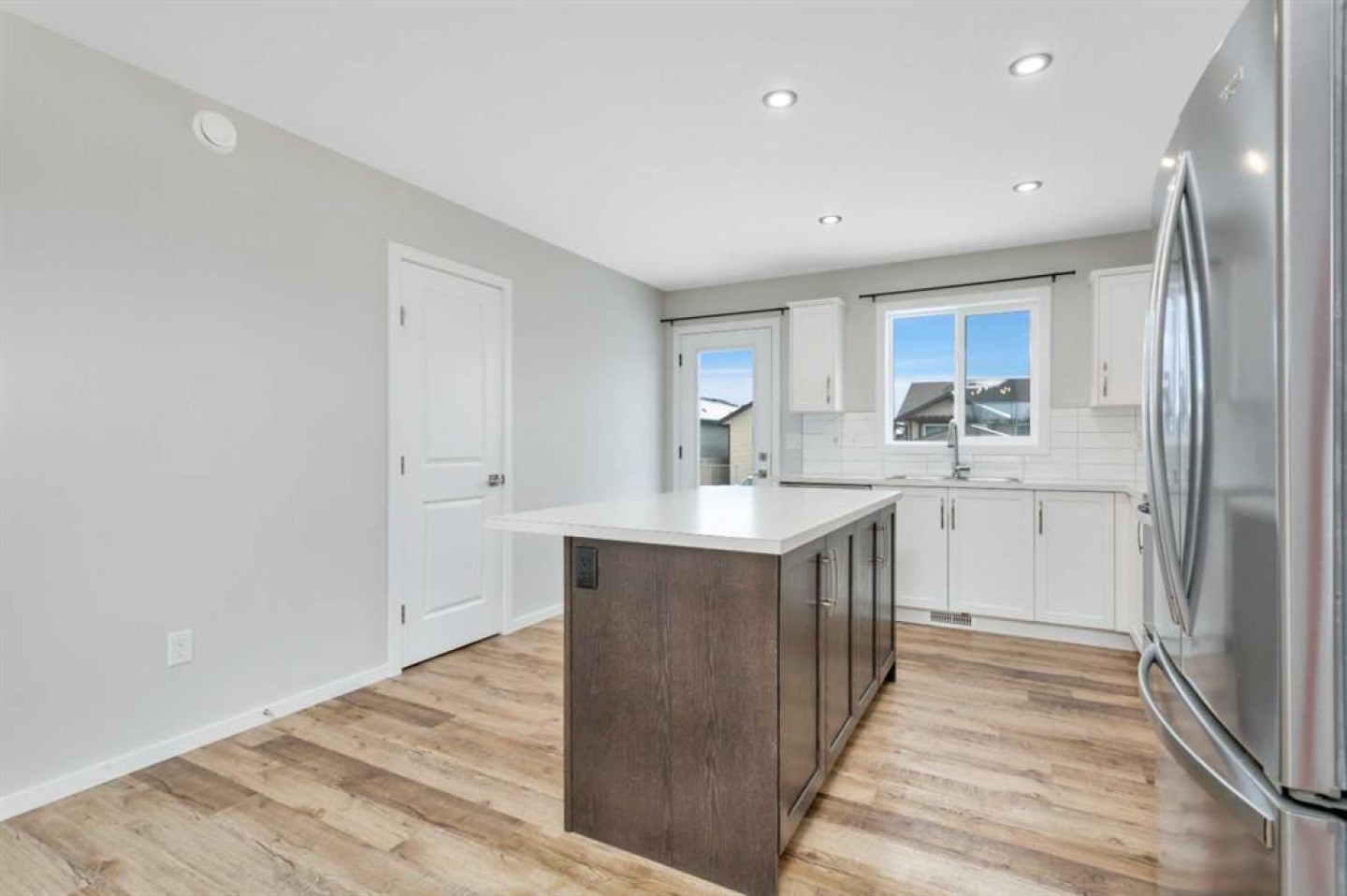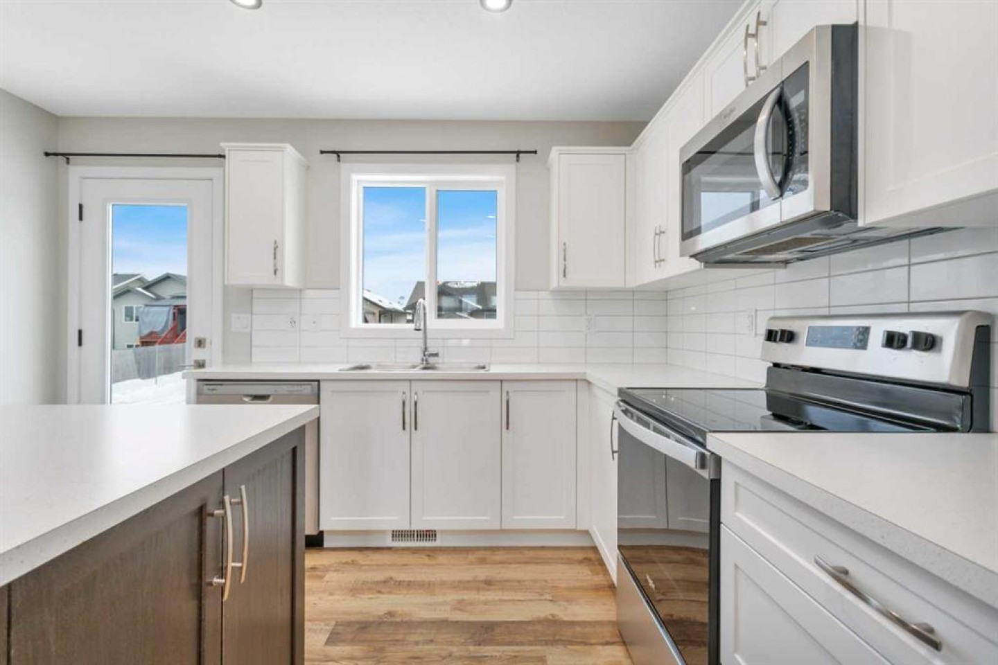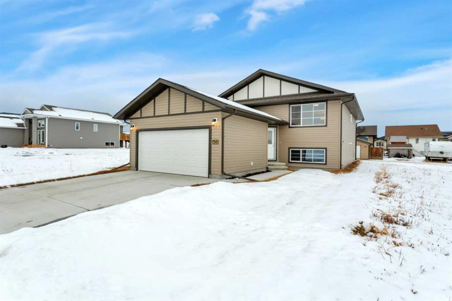 Welcome to this 2-year-old, 2024 Leabon-built bi-level located at 4424 53 Street in the desirable Creekside community of Rocky Mountain House. This home features an attached garage and a modern open-concept main living area encompassing the kitchen, dining, and living room. The kitchen is finished with white cabinetry, solid stone countertops, a central island, stainless steel appliances, a pantry, black light fixtures, and durable luxury vinyl plank flooring throughout the main level.
