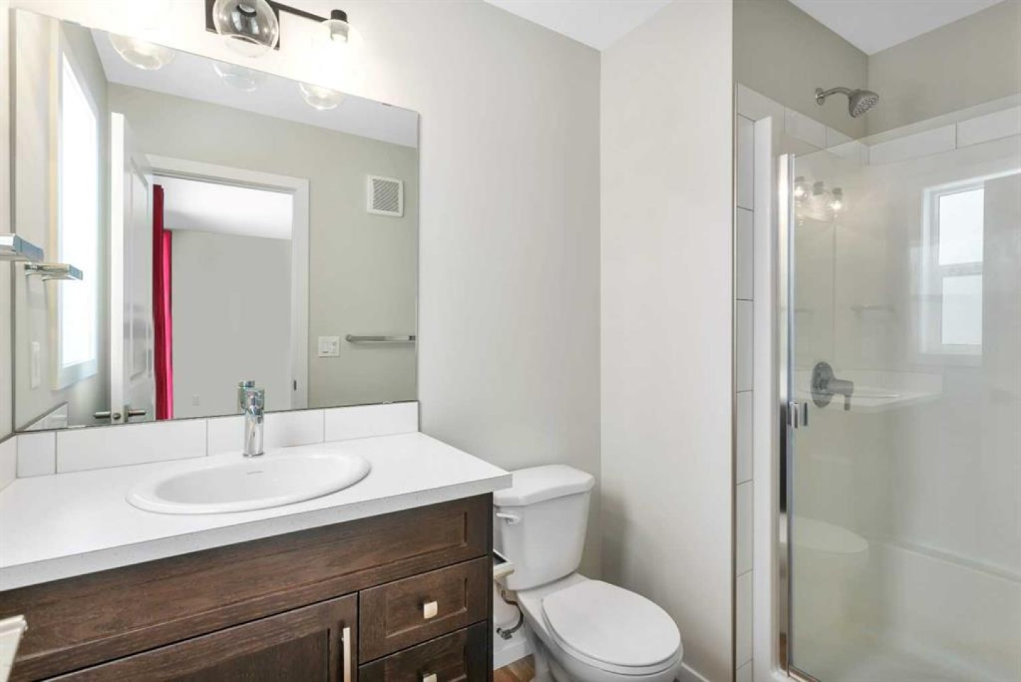 The main floor offers three bedrooms and a 4-piece bathroom. The primary bedroom, situated at the rear of the home with west-facing exposure, includes a spacious walk-in closet and a 3-piece ensuite.