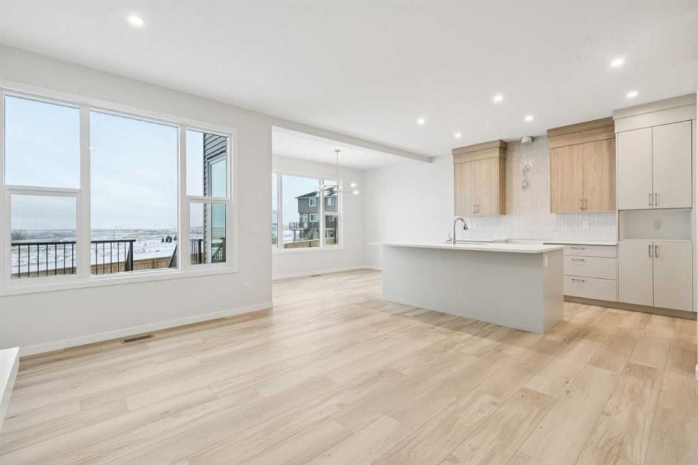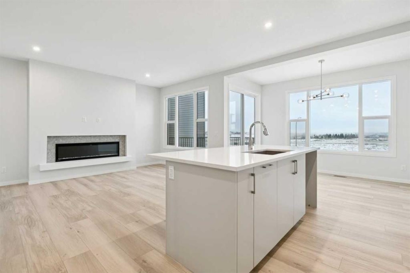 Welcome to this exceptionally crafted, Energuide certified quick possession by Cedarglen Home's, nestled in the prestigious and family-friendly community of Glacier Ridge NW Calgary. This beautiful home offers 2,092 sq ft of well-designed space with 4 bedrooms & 2.5 baths, plus a main floor flex room. Step inside to 8-foot doors which hug the 9-foot ceilings. A truly inspired kitchen that includes 42" cabinets, built in microwave, 2 bin garbage drawer, & your choice of appliances (gas or electric). The open concept includes an inviting living area with tile-detailed electric fireplace & separate dining area leading out to your deck w/ gas line to BBQ. The undeveloped basement is a blank canvas roughed in ready for potential future development.