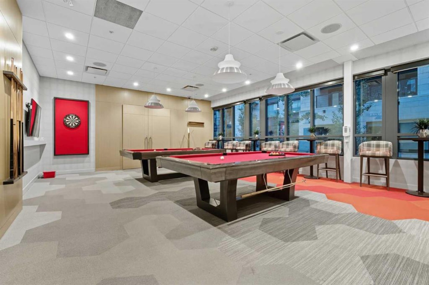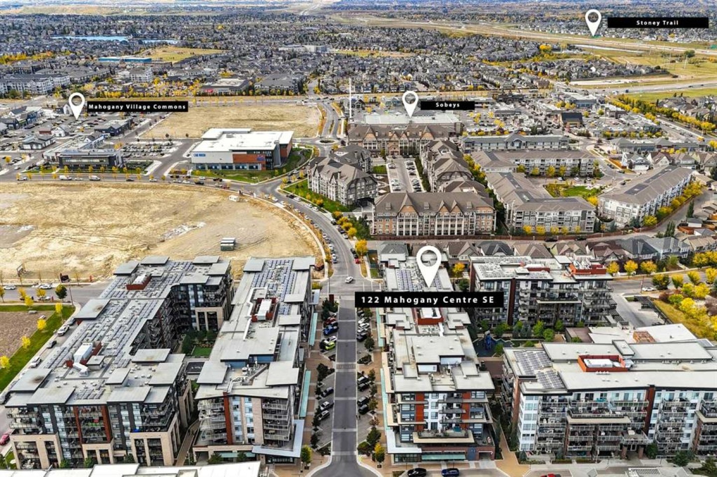 Lake Living Meets Elevated Comfort in Mahogany | Welcome to Calligraphy at Westman Village, nestled in the heart of Mahogany—Calgary’s premier lake community. This beautifully designed two-bedroom condo offers a functional layout, thoughtful upgrades, and access to truly unmatched, resort-style amenities. The open-concept living space is bright and inviting, anchored by a modern kitchen featuring stainless steel appliances, stone countertops, and a generous peninsula ideal for casual dining or entertaining. Just off the kitchen, the oversized laundry room provides exceptional additional storage and easily functions as a walk-in pantry. The living and dining areas connect seamlessly, creating a comfortable setting for both everyday living and hosting friends. The versatile second bedroom works equally well as a guest room or home office, while the primary suite offers a large window, walk-in closet, and convenient access to the stylish four-piece bath. Central air conditioning ensures year-round comfort. Step outside to a massive, covered private balcony—perfect for morning coffee, evening wine, or relaxing outdoors in any season. Westman Village sets a new standard for condo living with amenities rarely found elsewhere: an indoor pool with waterslide, full fitness centre, golf simulator, wine cellar, theatre room, demonstration kitchen, workshop, concierge service, and vibrant social spaces. Beyond your door, enjoy Mahogany Lake’s beaches, pathways, parks, shops, and dining. Complete with secure underground parking, this home offers a seamless blend of convenience, recreation, and community—ideal for professionals, downsizers, or anyone looking to embrace an active, connected lifestyle in one of Calgary’s most sought-after neighbourhoods.