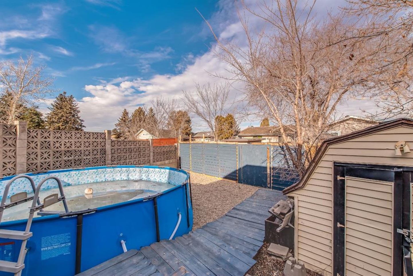 Excellent investment opportunity with great flexibility in this spacious 5-bedroom home, offering 3 bedrooms up and 2 down, plus two full bathrooms and a 2-piece ensuite. Located on a quiet cul-de-sac and situated on a large pie-shaped lot, this property offers strong value with major upgrades already completed. The bright main floor features a welcoming living room with a wood-burning fireplace (electric insert) and a bay window added in 2020. A separate dining area leads into the functional kitchen, complete with a stainless steel fridge, stove & dishwasher and a pantry with laundry hookups. Patio doors open onto a deck overlooking the fully fenced backyard. Outdoor space is a true highlight, featuring turf landscaping, a patio area, a shed, and an above-ground pool—perfect for summer enjoyment. The lower level provides added versatility with a second wood-burning fireplace and a separate kitchen area—ideal for extended family, guests, or potential revenue-generating use. Laundry options include hookups upstairs and a washer/dryer already installed downstairs. Improvements include new shingles 2025, all new windows (except 2) done in 2020, an exterior front door 2020, stainless steel appliances 2017, and laminate and vinyl plank flooring throughout. Parking is plentiful with a double concrete front pad and room for an RV. Additional features include a high-efficiency furnace (2017), central A/C and central vacuum (sold as-is). A solid opportunity for investors or buyers seeking a property with income potential, space, and substantial upgrades already in place.