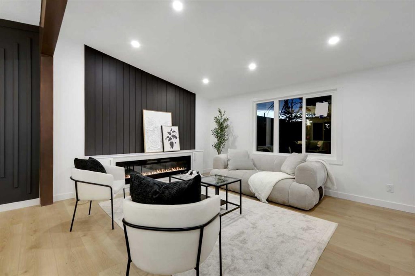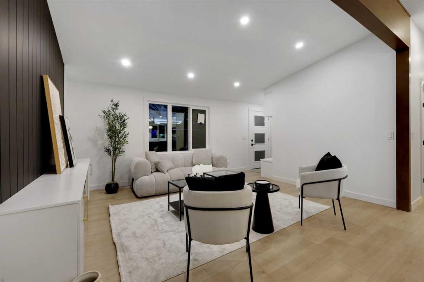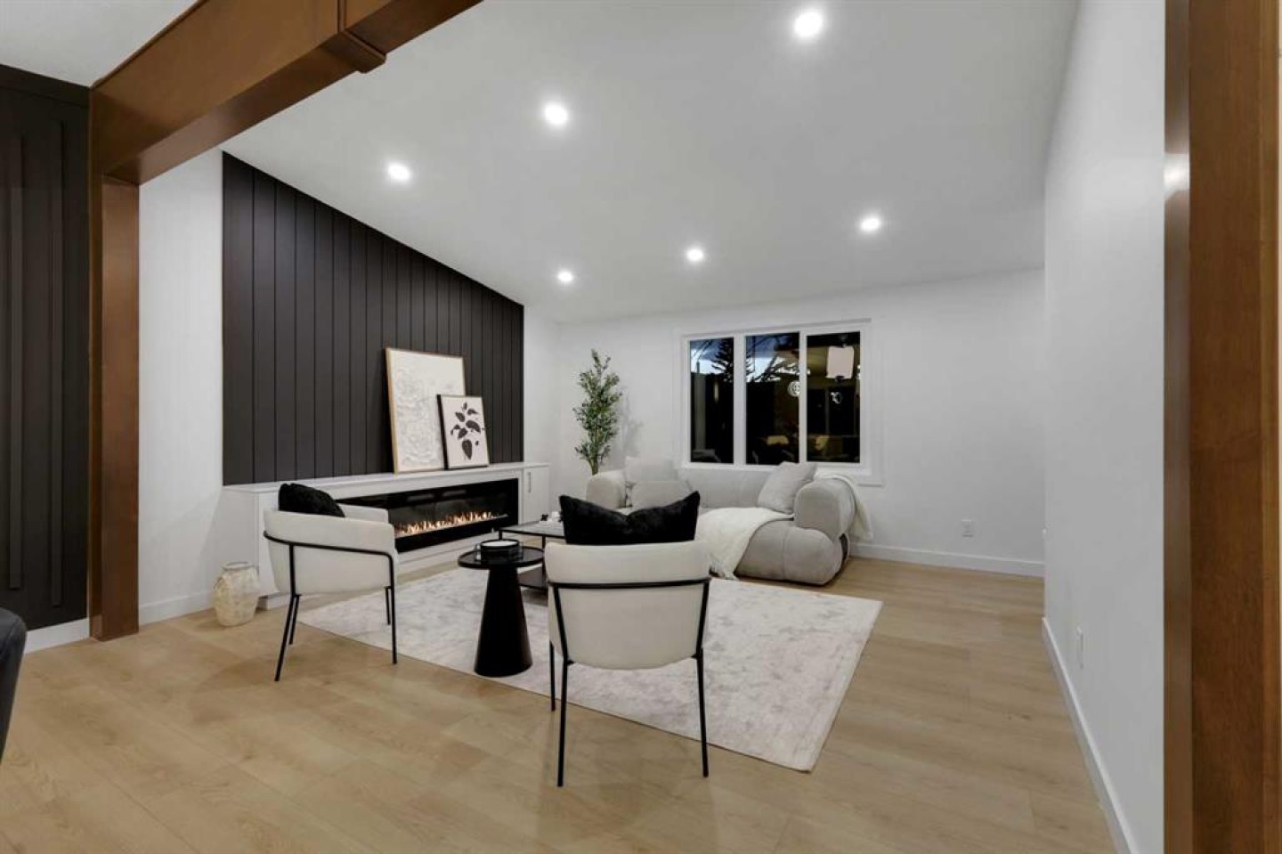 FULLY RENOVATED BUNGALOW | BRAND NEW TRIPLE GARAGE | ILLEGAL BASEMENT SUITE Welcome to this stunning, move-in-ready bungalow offering modern design and exceptional functionality. Step inside to a custom entry bench with built-in cabinetry, setting the tone for the thoughtful upgrades throughout. The bright living room features a show-stopping entertainment center with a 72” electric fireplace, while a striking wood beam beautifully separates the living space from the kitchen.