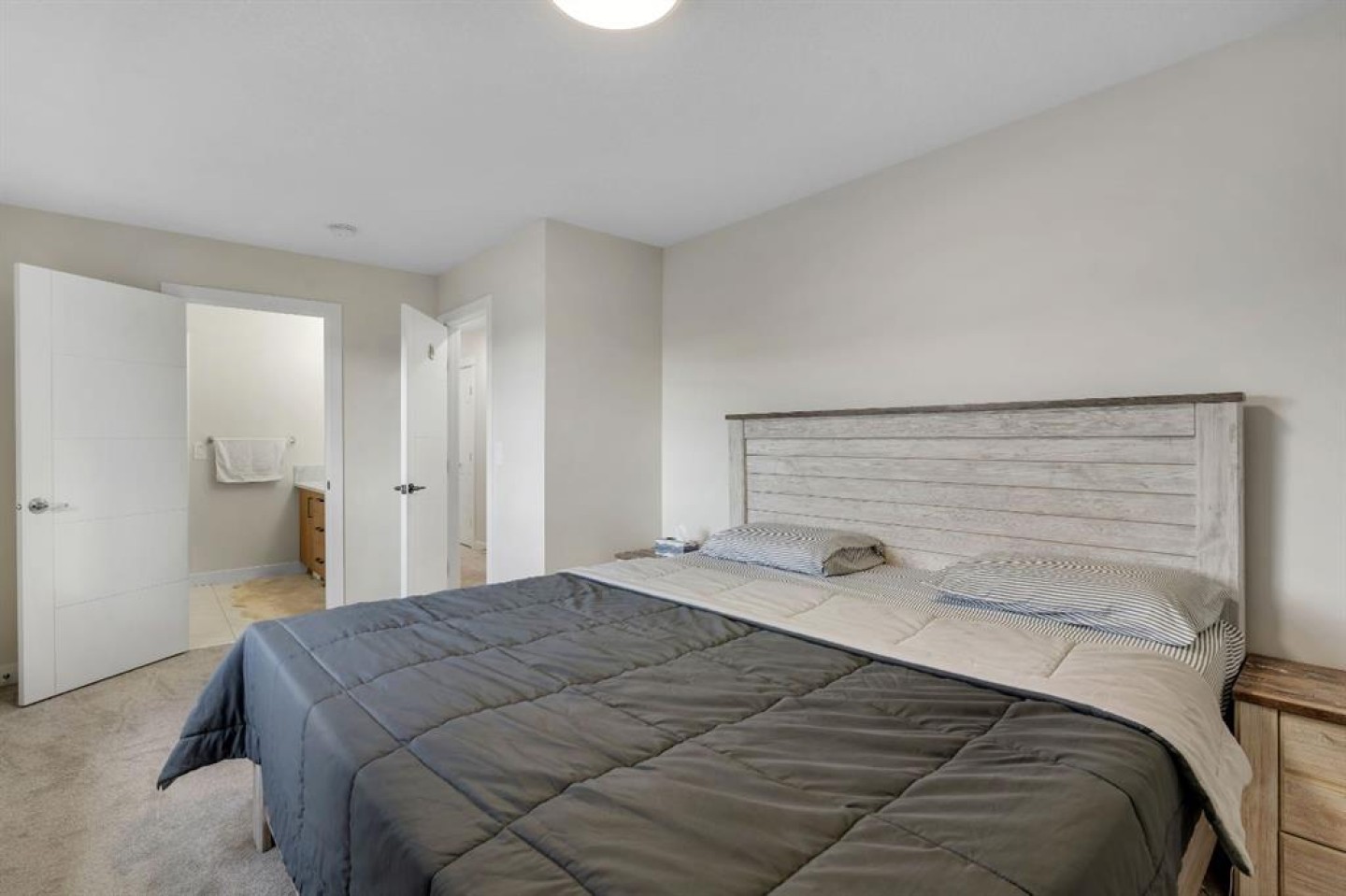 Finally… the wait is over. Opportunities like this are rare - a LIVE-UP & RENT-DOWN townhome backing onto pond views in the sought-after community of Strathmore Lake Estates, featuring NO condo fees and a front double attached garage. WOW - watch the video tour! Built in 2023 and loaded with upgrades, this almost-new showstopper offers 3 bedrooms + 3.5 baths, including a studio basement suite with separate entrance that is already rented - providing instant mortgage support from day one. Step inside to a bright, open layout enhanced by luxury vinyl plank flooring, upgraded railing, and LARGE windows that flood the home with natural light while framing peaceful pond views. The chef-inspired kitchen showcases quartz countertops, ceiling-height dual-tone cabinetry, upgraded appliances, and a generous island perfect for entertaining. The dining area flows seamlessly into a spacious living room, where patio doors lead to your 10’ × 10’ deck and HUGE fenced backyard is ideal for relaxing evenings or weekend gatherings. Upstairs you’ll find three spacious bedrooms, convenient upper laundry, and two full bathrooms finished with stylish ceramic tile. The primary suite is a true retreat, complete with a walk-in closet and private ensuite featuring a standing shower and dual sinks. The studio basement suite includes its own kitchen/wet bar setup and full bathroom- a versatile space ideal for rental income, extended family, or guests. Families will appreciate the walking distance to schools, playgrounds, shopping, walking paths, ponds, and green space, along with quick access to Highway 1. This home blends lifestyle, location, and income potential into one exceptional package. Don’t miss your chance to own in one of Strathmore’s most desirable lake communities.