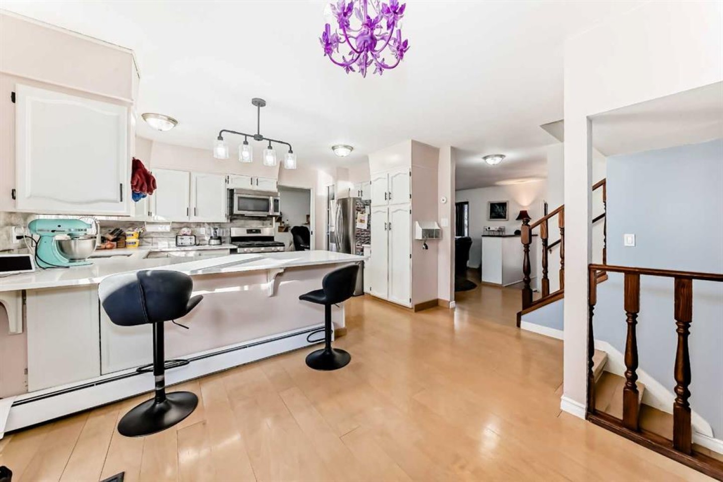 SWIMMING POOL, HOT-TUB, SAUNA, 2 DOUBLE GARAGES - 23 x 26 heated attached & 24 x 24 detached- What more could you want!!! Welcome to this exceptional family home located in the highly desirable Anders Park neighborhood, just around the corner from St. Elizabeth Seton School. This impressive two-storey residence features four bedrooms upstairs, offering an ideal layout for growing families. The beautifully landscaped front yard and newer driveway create outstanding curb appeal. Inside, the bright and inviting living room showcases a charming bay window and newer HARDWOOD FLOORING, flowing seamlessly into a spacious formal dining area — perfect for hosting family gatherings and entertaining. The well-appointed kitchen boasts light cabinetry, a stylish backsplash, wall pantry, and stunning QUARTZ COUNTERTOPS. The adjacent eating nook features patio doors leading to the expansive deck and overlooks the sunken family room below. This cozy yet spacious family room offers a WOOD-BURNING FIREPLACE and double garden doors providing direct access to the deck and backyard. The main level also includes a convenient 2-piece bathroom, MAIN-FLOOR LAUNDRY, and a rear entry with double closets for excellent storage and functionality. Upstairs, you’ll find four generously sized bedrooms and a full 4-piece bathroom. The primary suite includes a walk-in closet and private 3-piece ensuite. The lower level is designed for both relaxation and entertainment, offering an additional family room complete with wet bar, hot-tub, sauna, and 3-piece bathroom. The fully developed basement continues the theme with a dedicated theatre room highlighted by a striking cultured rock feature wall and electric fireplace, along with a games/family area featuring new tiled flooring and abundant storage space. This home is efficiently heated with a newer Rinnai tankless hot water heating system. Step outside to your own private oasis — a beautifully landscaped yard with mature trees, an awesome OUTDOOR POOL, covered deck, RV parking, lower deck, and a cozy firepit area, perfect for entertaining or relaxing year-round. Upgrades over recent years include paint, water softener, electrical panel, siding, shingles, and more, offering peace of mind and move-in-ready convenience. This incredible property combines comfort, functionality, and resort-style living.