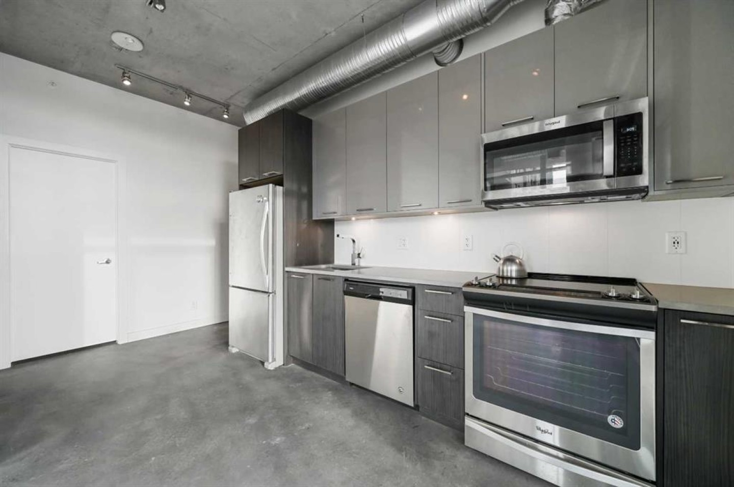 Welcome to this stunning 2-bedroom, ultra-modern corner condo offering breathtaking panoramic views and an unbeatable inner-city lifestyle. Designed with both style and functionality in mind, this bright and spacious home features 9-foot ceilings, floor-to-ceiling windows, and a spectacular balcony perfect for enjoying Calgary’s skyline and unforgettable sunsets. From the moment you enter, you’re greeted by unobstructed views of the Calgary Tower, Central Library, and Stampede Grounds, creating an instant wow factor. The open-concept layout is flooded with natural light and showcases contemporary finishes throughout, including a sleek kitchen, modern bathroom, and thoughtful design that maximizes both space and comfort. The southwest exposure enhances the airy feel, while the partially covered balcony allows for year-round enjoyment. Additional highlights include concrete construction for superior soundproofing, in-suite laundry, a spacious foyer, central storage closet, titled heated underground parking, and assigned storage. The building offers exceptional amenities, including a rooftop social lounge and patio ideal for watching Stampede fireworks or enjoying views of the Bow River and downtown skyline, as well as a bike storage room with repair station and a dedicated dog wash. Ideally located on a quiet, low-traffic street yet steps from downtown, transit, river pathways, shops, restaurants, and entertainment, this move-in-ready home delivers the perfect blend of modern living, walkability, and vibrant urban lifestyle.