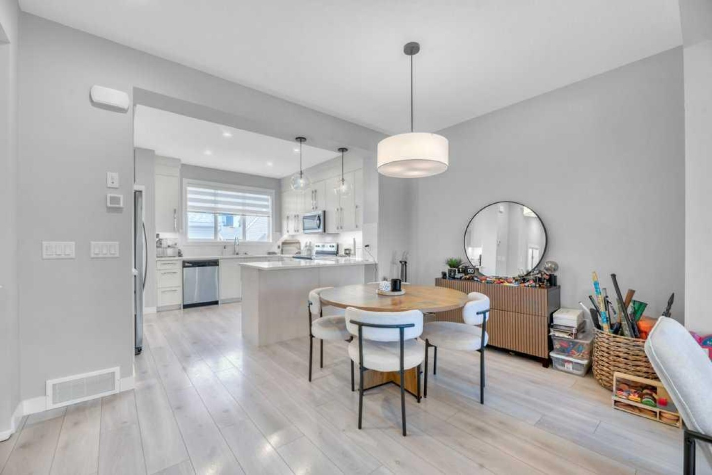 Modern, bright, and thoughtfully laid out—this home checks all the boxes for today’s lifestyle. Step inside to an airy open-concept main floor filled with natural light from large windows and custom blinds for added privacy and style. At the heart of the home is a beautifully laid-out kitchen with expanded counter space and extra storage—ideal for anyone who loves to cook, host, or simply spread out and enjoy the space. Finished with quartz countertops throughout and stainless-steel appliances, the kitchen blends function with a clean, contemporary look. A practical mudroom at the back of the home, with storage and a 2 piece bath, leads to the backyard, where you’ll find a flexible outdoor space to design into your ideal backyard. Heading upstairs, unwind in the spacious primary suite featuring a tray ceiling, walk-in closet, and a spacious ensuite. Two additional well-sized bedrooms, a full bathroom, and convenient upper-floor laundry complete the level. Downstairs, the unfinished basement is a blank canvas with bathroom rough-ins already in place—ready for your future development plans. Set in a desirable location near parks, pathways, schools, shopping, and restaurants, with the lake just minutes away, this home offers both everyday ease and weekend adventure. Priced to Sell!