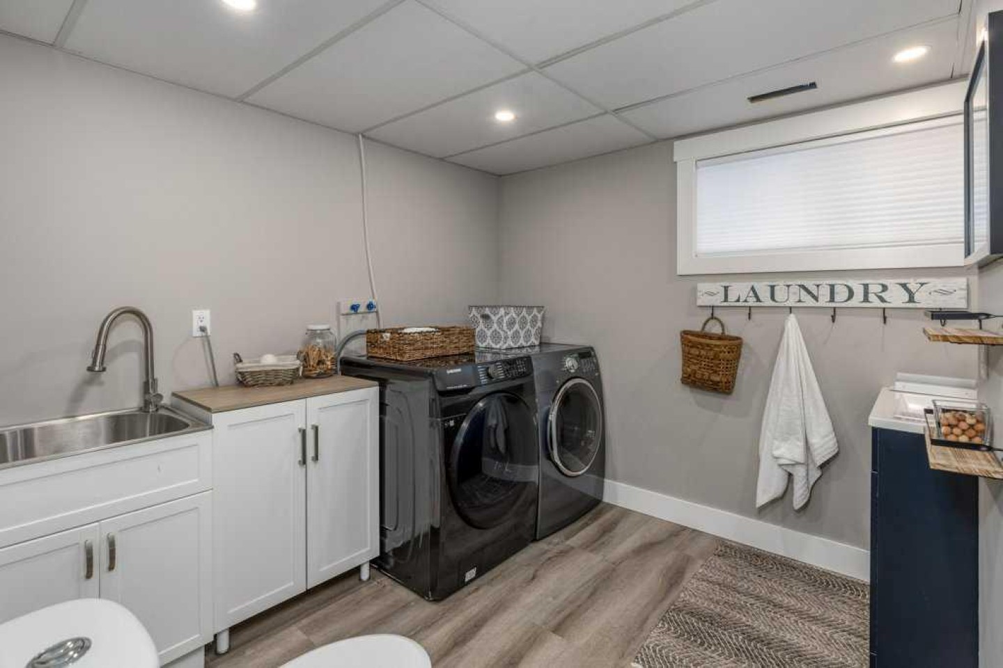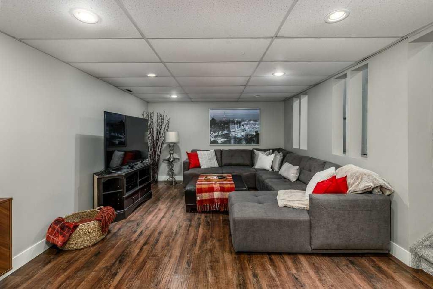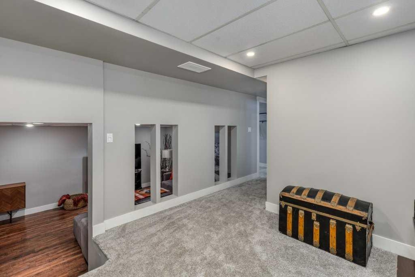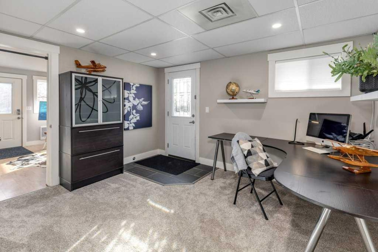 The lower level offers exceptional flexibility with a large flex room currently used as a home gym, office area, studio/sauna space, laundry, and a 3-piece bathroom. One level down, enjoy the ultimate family movie and recreation area complete with a cozy wood-burning stove—an ideal retreat for quiet evenings or family movie nights.