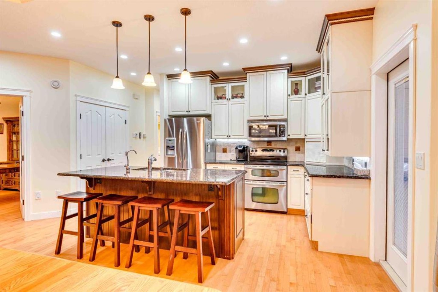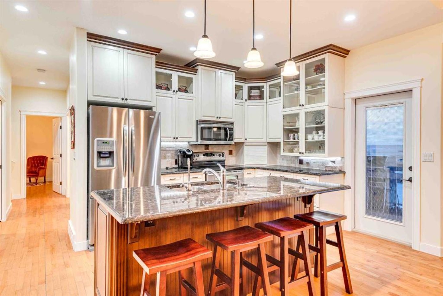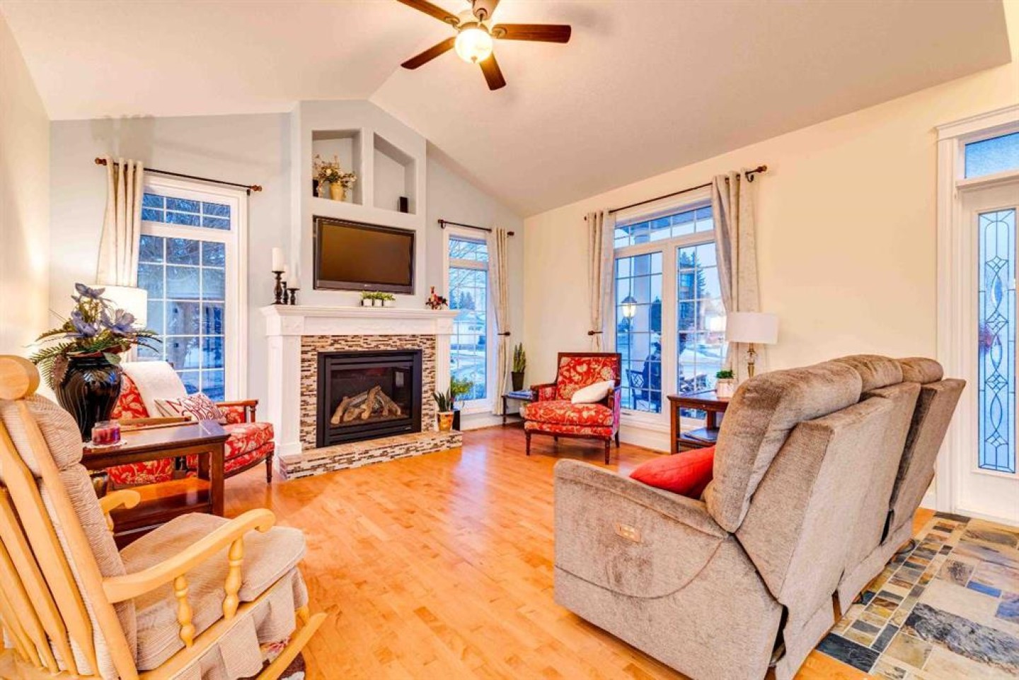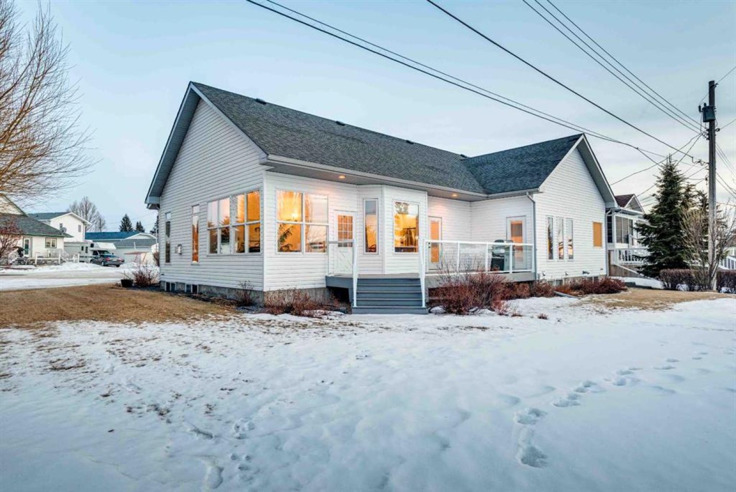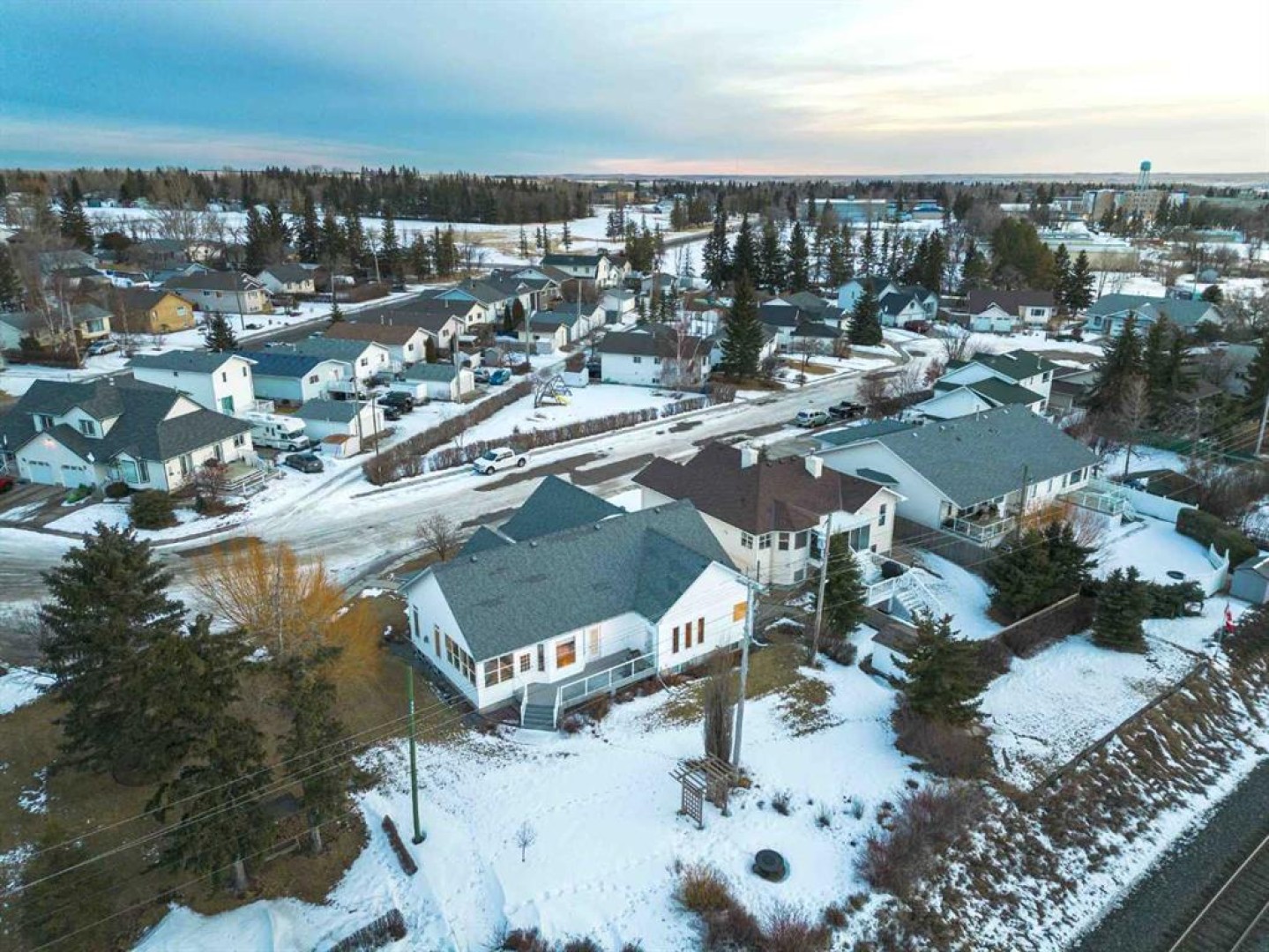 Enjoy amazing country views from this well-appointed bungalow featuring a fully developed basement and a versatile loft space above the attached garage. Thoughtfully designed with comfort and functionality in mind, this home offers an ideal layout for empty nesters or families alike. The main floor welcomes you with a bright living room highlighted by a vaulted ceiling and cozy gas fireplace, flowing seamlessly into a generous dining area with direct access to the sunroom—perfect for enjoying the surrounding views year-round. The kitchen is well equipped with an island, quartz countertops, and ample cabinetry. Retreat to the vaulted primary bedroom, complete with a walk-in closet, 5-piece ensuite, and access to the back deck. Completing the main floor are a second bedroom, a 4-piece bathroom, stairs leading to a versatile loft space above the garage, and a generous laundry area offering convenient access to both the developed basement and the attached double garage. Downstairs, the large developed basement is ideal for entertaining or extended family use, featuring a massive recreation area, kitchenette, 3-piece bathroom, and two bedrooms (one currently used as a storage room and not fully finished). Located in the welcoming Town of Three Hills, residents enjoy excellent amenities including schools, parks, playgrounds, swimming pool, arena, walking trails, hospital, shopping, dining, and a strong sense of community—while still benefiting from the peace and space of small-town living with beautiful prairie views.