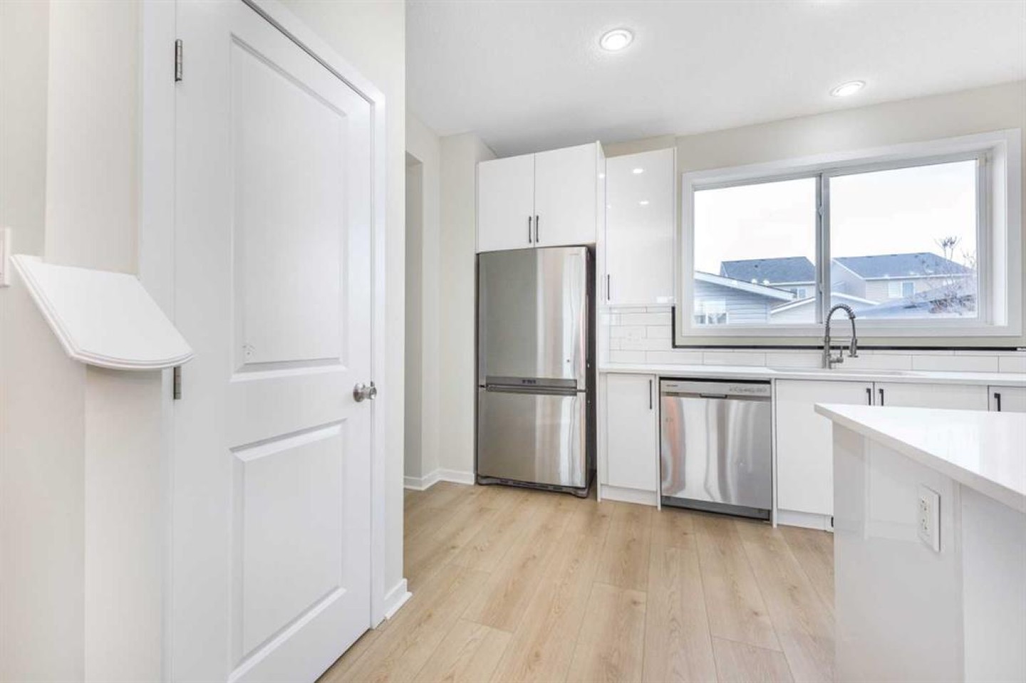 LIVE UP! RENT DOWN! Welcome to your new home in Skyview Ranch, one of Calgary’s most vibrant and family-friendly communities! Conveniently located right in front of a bus stop and playground, this home is perfect for families and commuters alike. Everyday essentials are closer than ever, with schools, parks, shopping, and amenities just minutes away. Step inside to a bright, open-concept layout filled with natural light from large windows, complemented by brand-new LVP flooring throughout the home. The stunning bright white kitchen features new countertops, brand-new cabinets, and stainless steel appliances, making it both stylish and functional. A half bathroom and a built-in computer desk complete the main level. Upstairs, the spacious primary bedroom offers a huge walk-in closet and a luxurious 4-piece ensuite bathroom. The second level also includes two generously sized bedrooms and an additional 4-piece bathroom, ideal for a growing family. New roofing, siding & cedar wood done on December 2025. The home also boasts a fully finished, illegal basement suite with a separate side entrance, featuring a 2-bedrooms, new kitchen countertops, brand-new cabinets, bathroom, and living area. an excellent mortgage helper or private space for extended family.