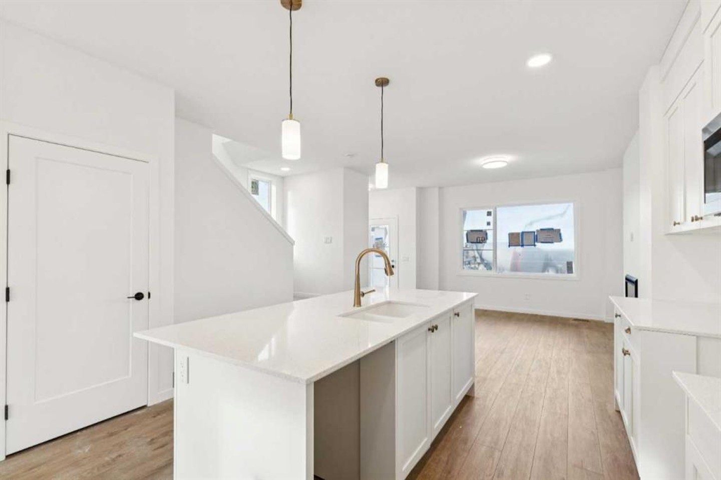 Available for immediate possession, 90 Bluerock Hill SW features the Kindle model by Calbridge Homes in the Alpine Park community. This thoughtfully designed 1,462 sq ft home offers 3 bedrooms and 2.5 bathrooms with a bright, functional layout ideal for modern living. The main floor includes a welcoming great room with large windows that fill the space with natural light, flowing into an L-shaped kitchen with a flush island and stone countertops—perfect for cooking, dining, and entertaining. A side entry provides added flexibility and privacy. Upstairs, all three bedrooms are well arranged, including a comfortable primary retreat. An optional lower level offers future development potential with space for an additional bedroom, bathroom, and media area. A double attached garage completes this well-rounded home. Photos are representative.