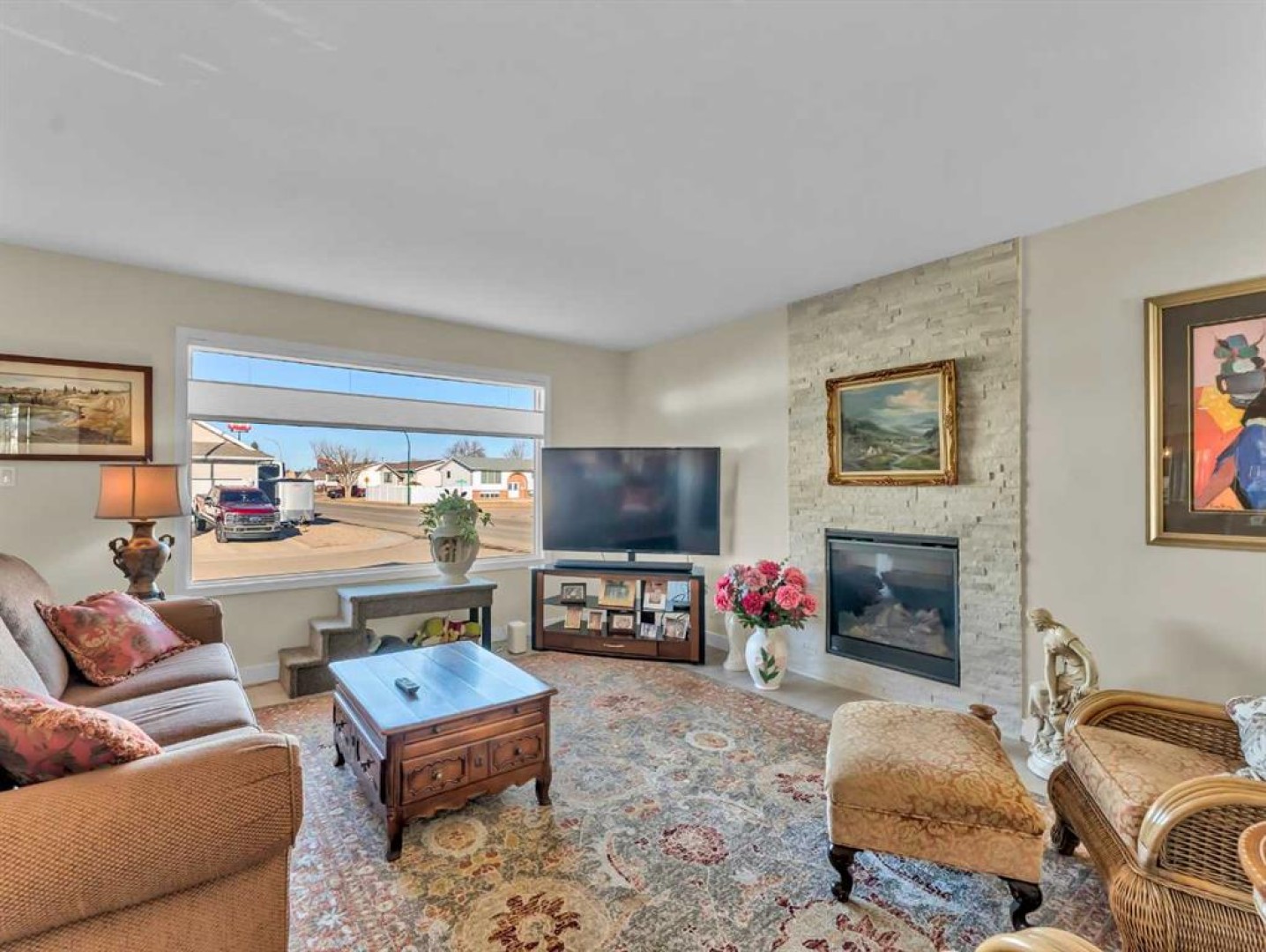 Spacious and beautifully updated bungalow situated on a lovely corner lot in desirable Ross Glen! Offering 1,461 square feet, this home is ideal for those looking to downsize with the convenience of one-level living, while the unfinished basement provides a blank slate with excellent potential for future development. Numerous updates have been completed throughout, including kitchen appliances, cabinetry, granite countertops, flooring, and tasteful modern light fixtures. The open-concept living room, dining area, and kitchen create a welcoming space for everyday living and entertaining, all centered around a cozy gas fireplace. The kitchen features a functional island that adds extra seating and storage.