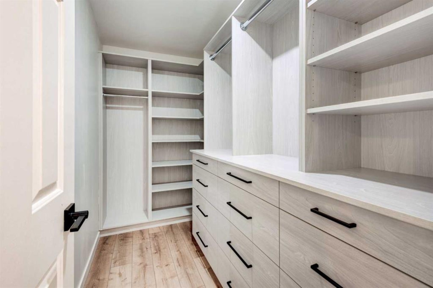 Up a short flight of stairs, you’ll find two generously sized bedrooms, a beautifully finished four-piece main bathroom, a convenient laundry room, and a stylish two-piece powder room. Continue up to the private primary retreat and prepare to be impressed. The spacious loft area is outfitted with custom cabinetry and can be used as a home office, reading lounge, or dressing area. The large primary suite offers a luxurious five-piece ensuite with dual sinks, a walk-in shower, and soaker tub, along with a walk-in closet complete with more custom millwork.