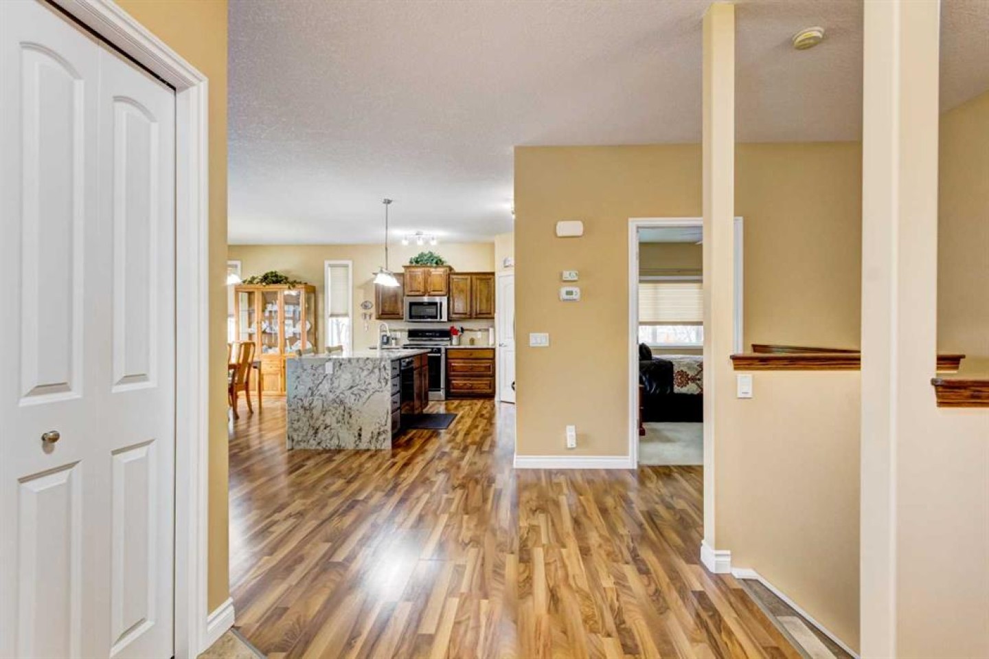 Experience the ultimate hybrid of privacy and community in this rare, stand-alone detached BUNGALOW located in a sought-after mature 55+ complex. This meticulously maintained 1447 sf home offers the total independence of a detached house with all the carefree, maintenance-free perks of condo living. Step into the tiled entrance to an airy , open-concept layout featuring soaring 9 foot ceilings and large new front windows that flood the space with natural light. The kitchen showcases sleek granite countertops with waterfall detail on the island, complimenting ample storage and meal prep area. For the ultimate in modern convenience, this home features remote-controlled blinds, allowing you to adjust your privacy and lighting with the touch of a button. To assist in temperature control and comfort, the home is equipped with central air conditioning. The main floor also includes a convenient and well lit laundry room. This home has been enhanced by the new triple pane argon windows on the North exposure and R50 insulation added to the attic space, ensuring efficiency and lower utility costs. Lets not forget the additional 1289 SF of bonus space in the unspoiled basement providing endless potential for another bedroom, family room, massive workshop, hobby room, or incredible storage and there is also a rough-in for a future bathroom. The attached garage is heated and also offers additional storage. This isn't just a home, its a community. Owners enjoy full access to the main building's social rooms and can participate in a vibrant calendar of community social events. Peace of mind is guaranteed with expert management by Astoria Asset Management. The complex also offers RV storage and 2 large patios on the East side of the building for summer gatherings. For your internet convenience, fiber optics has been installed to the house and the home is protected by a whole home surge protection appliance! They simply have not built enough of this type of property! Call your Realtor® for a private viewing.