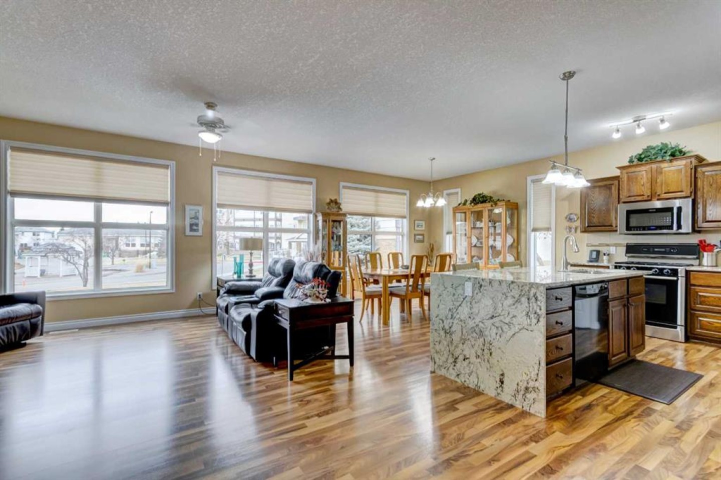 Central Air Conditioner, Dishwasher, Dryer, Garage Control(s), Gas Range, Humidifier, Microwave Hood Fan, Refrigerator, Washer, Window Coverings