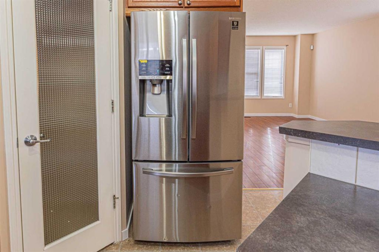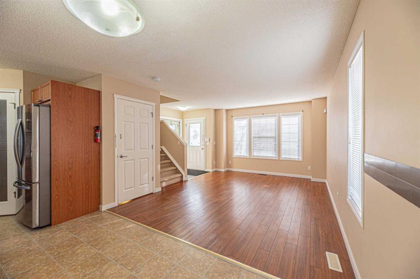 Perfect for a young family, the main floor features a bright living room with a large south-facing window, a spacious dining area, and a kitchen equipped with new appliances and laminate countertops. A 2-piece bathroom and a rear entrance leading to the backyard complete the main level.