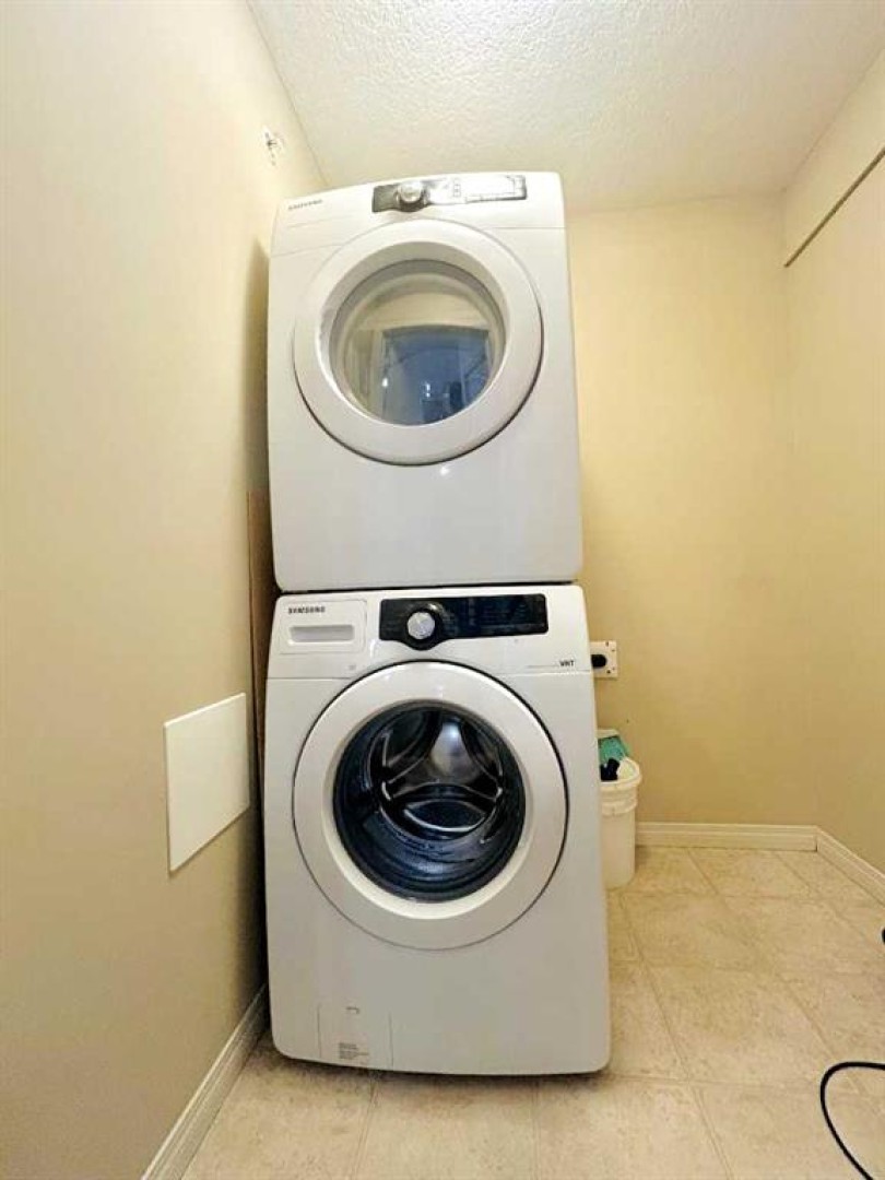 Central Air Conditioner, Dishwasher, Electric Stove, Garage Control(s), Microwave, Range Hood, Refrigerator, Washer/Dryer Stacked, Water Purifier, Window Coverings