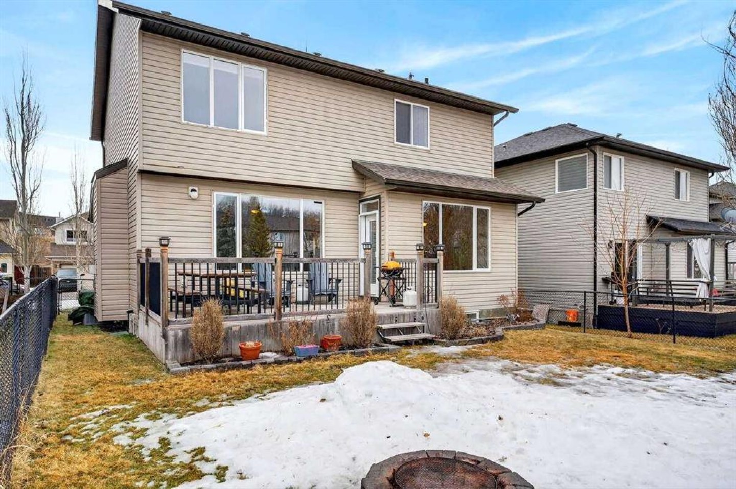 Desirable Sheep River Cove location, this beautiful 4-bed, 4-bath family home offers the perfect mix of comfort and tranquility. Surrounded by a quiet neighborhood, lush parks and the Sheep River, this home is ideal for homeowners seeking a small-town feel with all the amenities of the city. Spacious and modern, this 2-storey, air conditioned home has 3,000+ sq ft living space, perfect for families and entertaining. Steps away from the park, nature trails, recreational amenities, schools and shopping. The main floor offers open concept, large kitchen and living room, walk-through pantry and easy access to the back yard and large deck with natural gas hook up for your BBQ. The irrigated and landscape yard features a fully fenced in area and large storage shed. The upper floor has 3 bedrooms, bonus room, large windows and laundry room with cabinetry and sink. The basement features 9' ceilings a full finished entertaining/rec room, additional bedroom and luxurious bathroom. The finished, double attached garage includes radiant heat, cabinetry and built in sink. Here is your chance to own an amazing home in the heart of Sheep River!