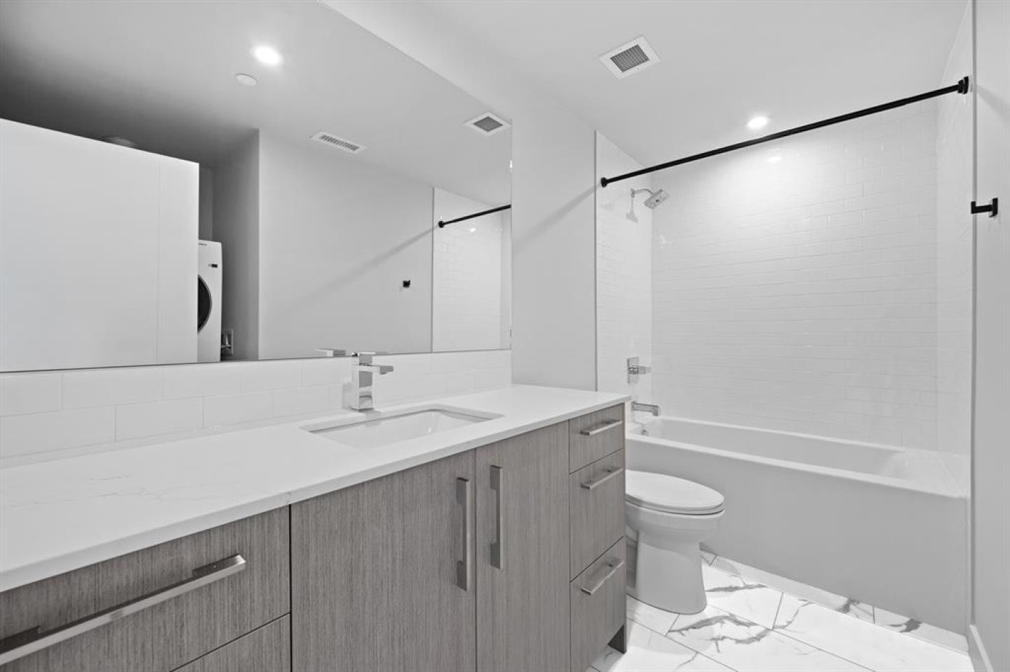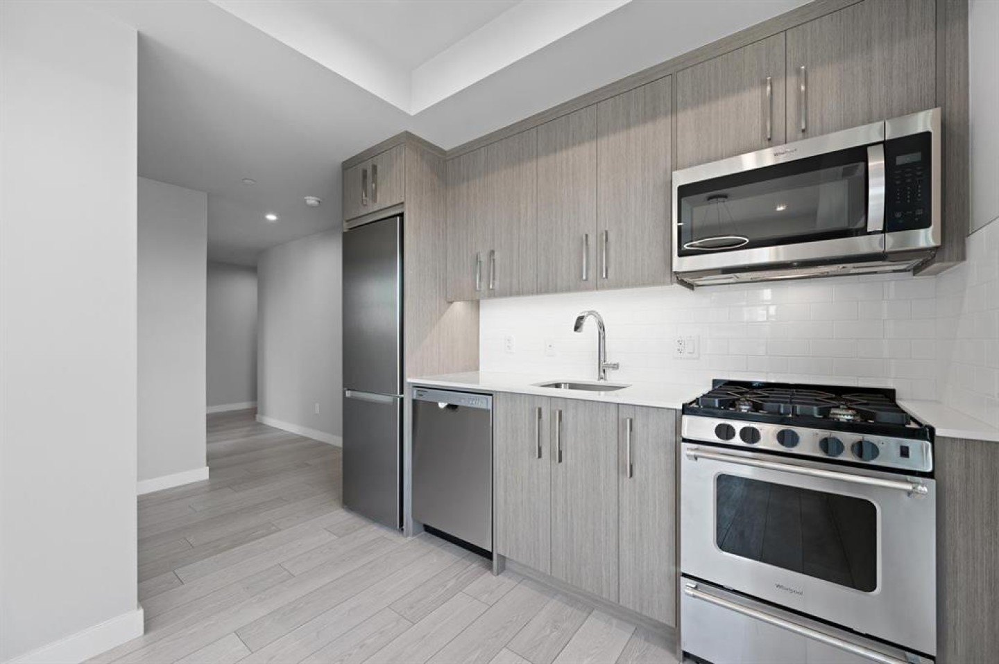 This thoughtfully crafted 1-Bedroom, 1-Bathroom residence blends modern design with everyday functionality. The sleek kitchen showcases quartz countertops, full-height cabinetry, and stainless steel appliances, flowing effortlessly into a sunlit open-concept living area. The bedroom bright and inviting, while the bathroom is finished with clean lines and high-quality fixtures that elevate daily living.