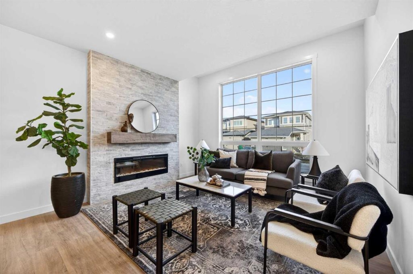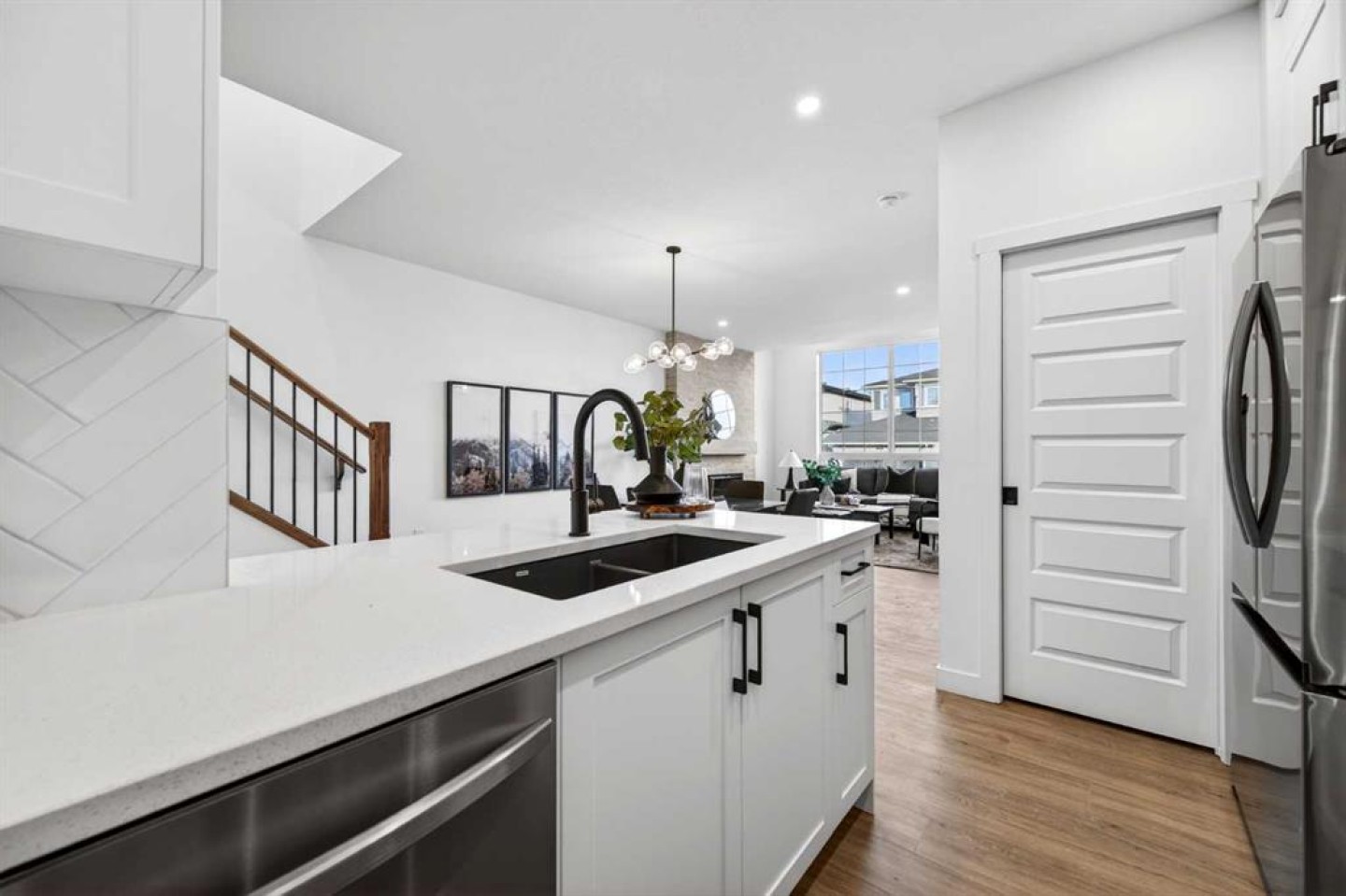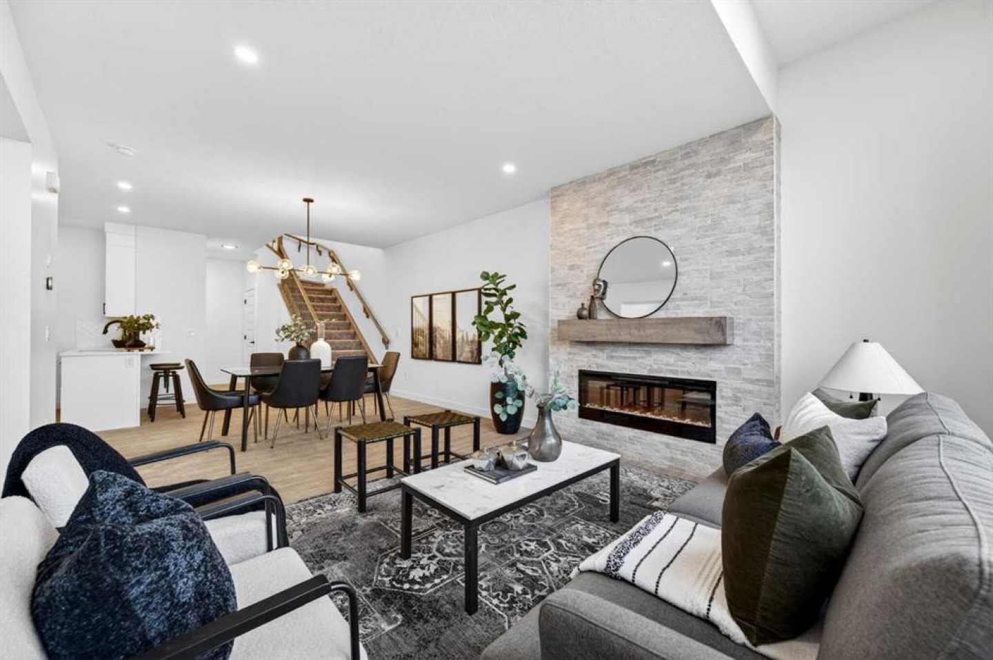 Welcome to 1055 Bayview Crescent, a beautifully designed street-side luxury townhome with NO CONDO FEES! This interior Jasper townhome features an attached double garage, a rooftop patio, and low-maintenance living. The tastefully designed home offers over 1400 sq ft. of above-grade living space plus an unfinished basement with 9' ceilings, ready for your design ideas. On the main floor, you will find soaring ceilings in the open-concept living space and large windows that let natural light flow through. The chef-inspired kitchen offers beautiful cabinetry and stone countertops and is well-equipped with stainless steel appliances. The kitchen is open to the dining and living room, perfect for entertaining family and friends. Complimenting the main floor is a convenient half bath, storage and entry from the attached garage. Venturing upstairs, you will find a spacious primary retreat with a spa-like ensuite, a spacious shower, and a generous walk-in closet. Two additional bedrooms, a full bath, a 4-piece bath and laundry complete the upper level. Outside, enjoy time on your upper south-facing rooftop patio, which is situated above the garage. Bayview is a beautiful community with parks, benches and pathways that meander throughout the community and along the canals. Kids and adults alike will enjoy the outdoor basketball nets, gym, amphitheatre, and tennis courts, which convert into a skating rink in the winter. Come and see all the amenities the community offers for yourself! *RMS has been applied to the construction drawings provided by the builder. Taxes to be assessed.