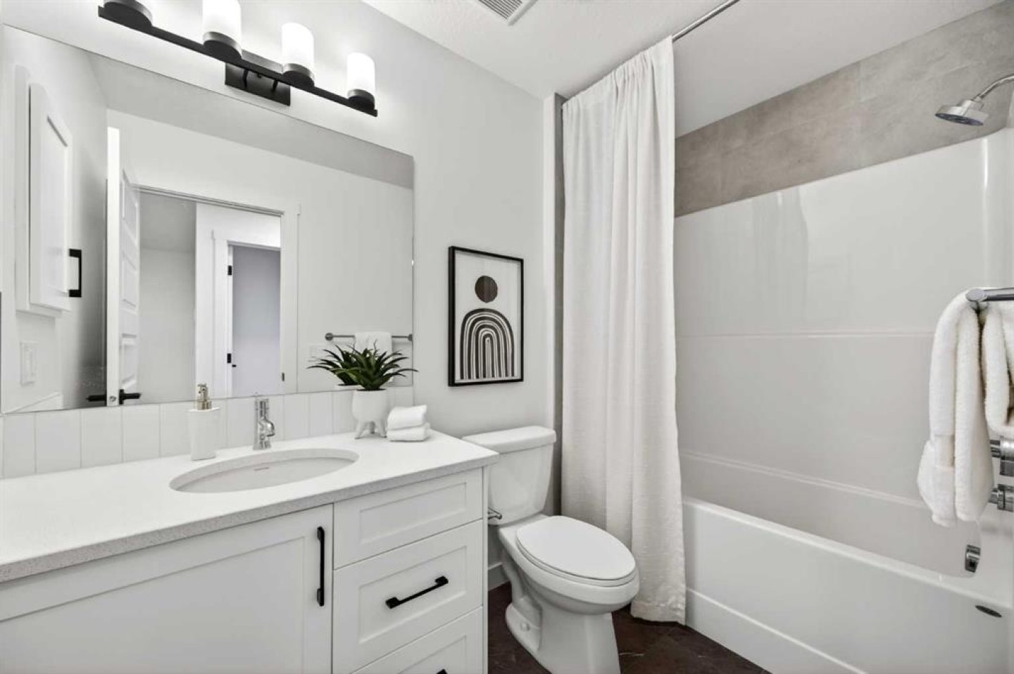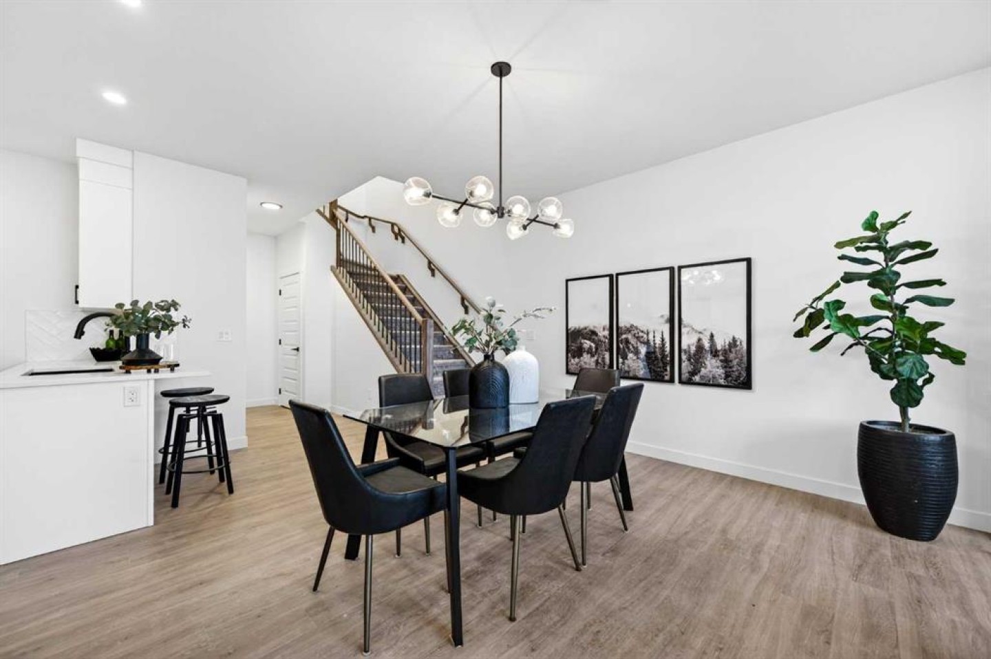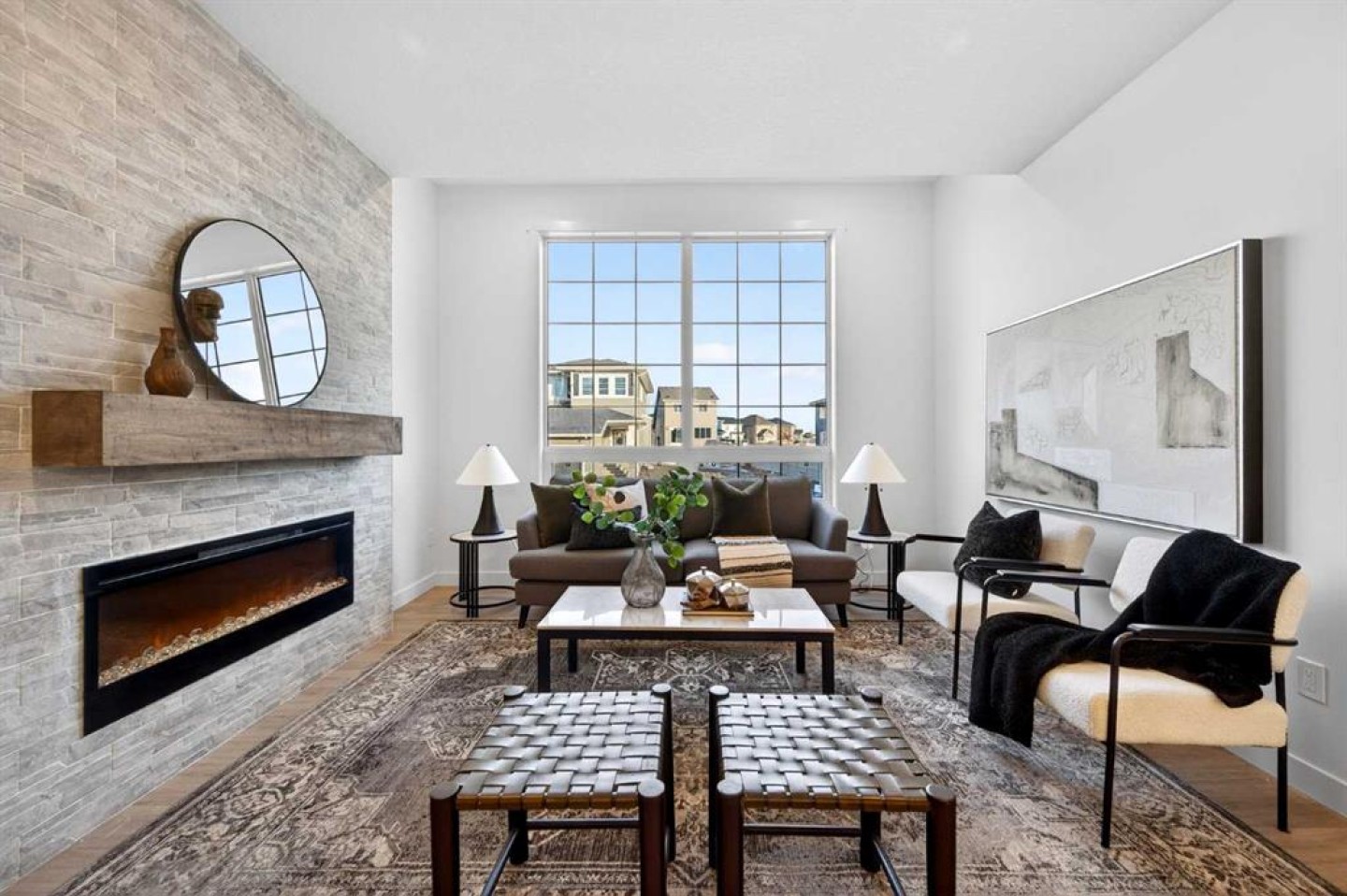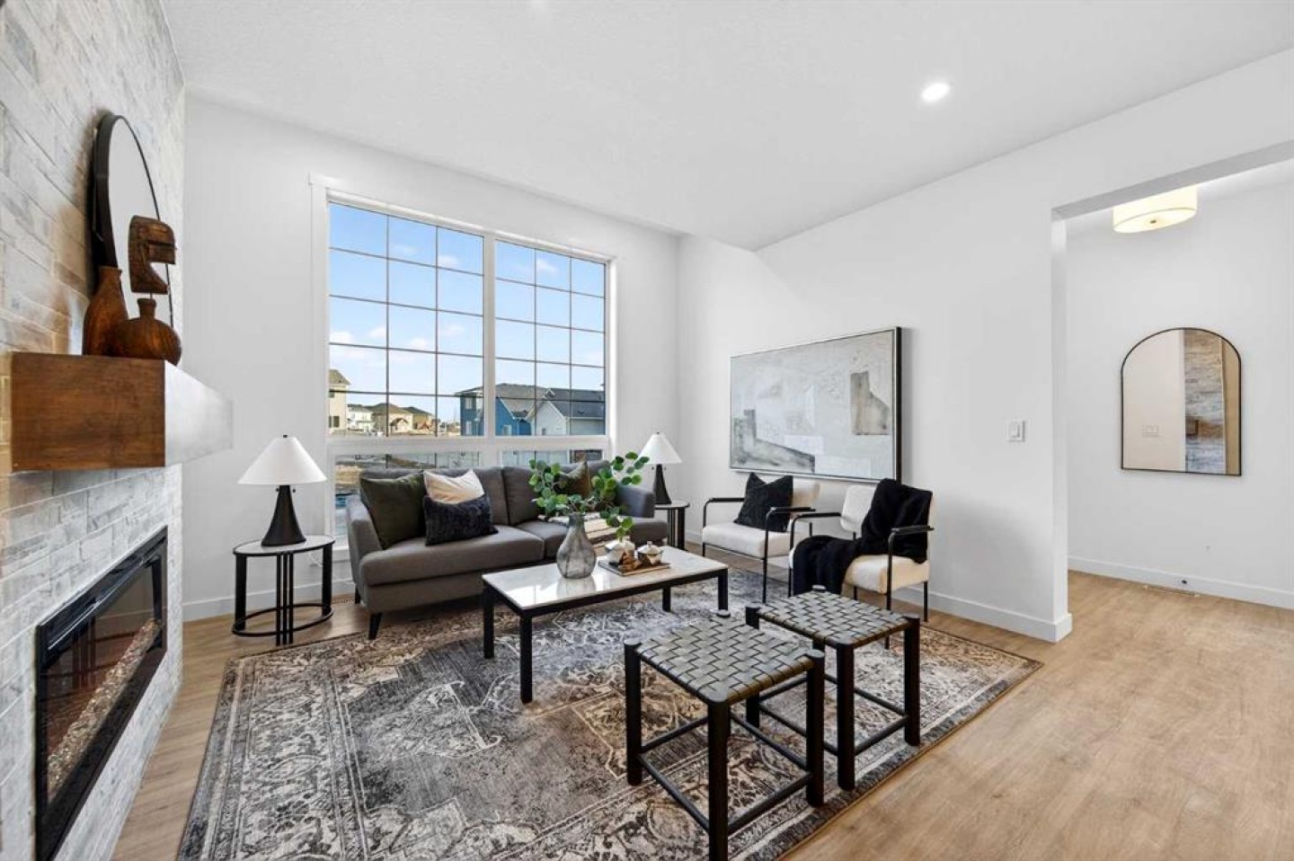 Welcome to 1055 Bayview Crescent, a beautifully designed street-side luxury townhome with NO CONDO FEES! This interior Jasper townhome features an attached double garage, a rooftop patio, and low-maintenance living. The tastefully designed home offers over 1400 sq ft. of above-grade living space plus an unfinished basement with 9' ceilings, ready for your design ideas. On the main floor, you will find soaring ceilings in the open-concept living space and large windows that let natural light flow through. The chef-inspired kitchen offers beautiful cabinetry and stone countertops and is well-equipped with stainless steel appliances. The kitchen is open to the dining and living room, perfect for entertaining family and friends. Complimenting the main floor is a convenient half bath, storage and entry from the attached garage. Venturing upstairs, you will find a spacious primary retreat with a spa-like ensuite, a spacious shower, and a generous walk-in closet. Two additional bedrooms, a full bath, a 4-piece bath and laundry complete the upper level. Outside, enjoy time on your upper south-facing rooftop patio, which is situated above the garage. Bayview is a beautiful community with parks, benches and pathways that meander throughout the community and along the canals. Kids and adults alike will enjoy the outdoor basketball nets, gym, amphitheatre, and tennis courts, which convert into a skating rink in the winter. Come and see all the amenities the community offers for yourself! *RMS has been applied to the construction drawings provided by the builder. Taxes to be assessed.