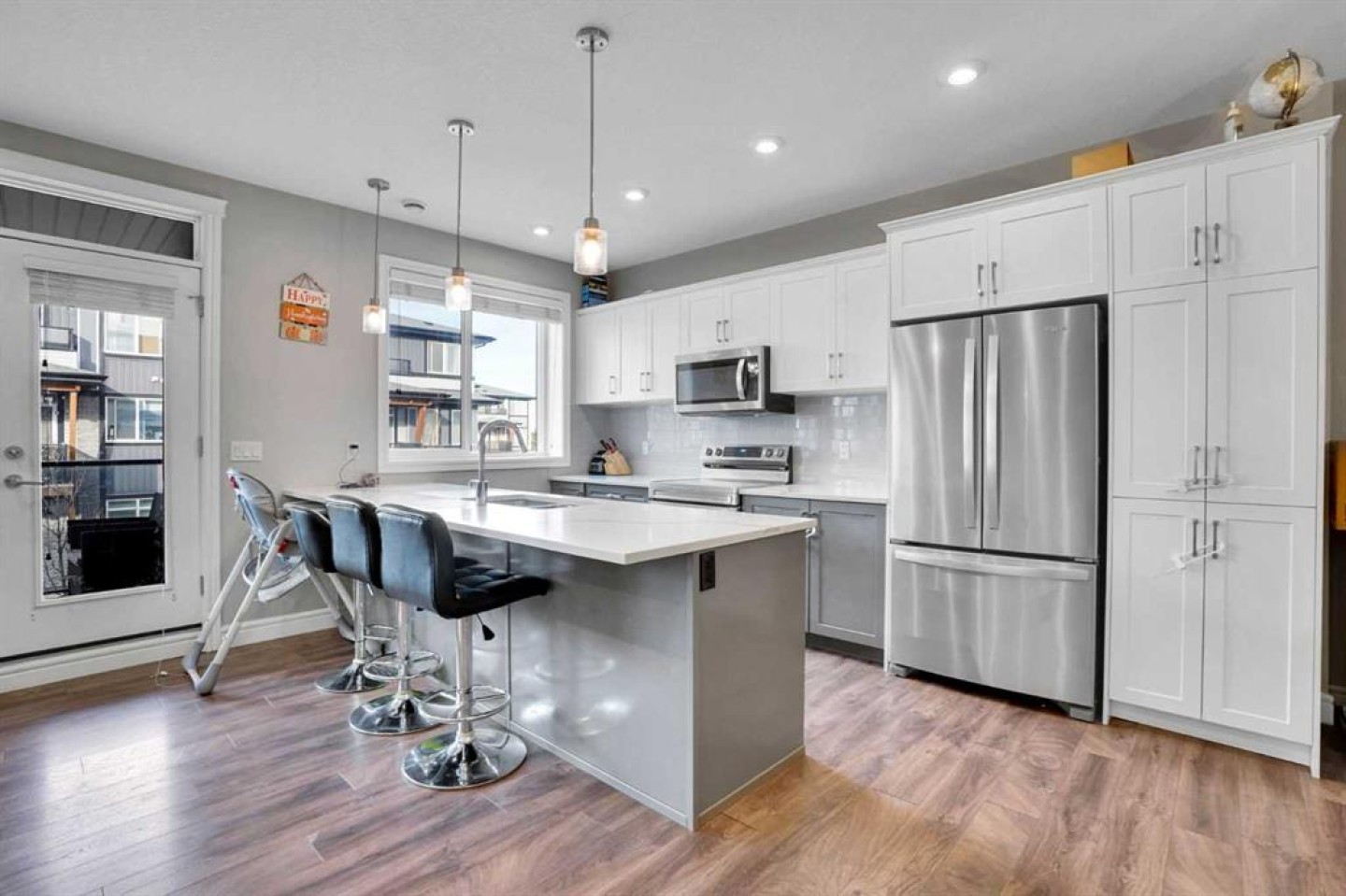 Attached Garage | 3-Bedrooms | 2.5 Bathrooms | Open Floor Plan | Quartz Countertops | Stainless Appliances | 2-Balconies. Welcome to this stunning and beautiful 3-storey, 3-bedroom townhouse with an open living space. The front door opens to a stairwell that leads directly up to the main living area on the 2nd floor. At the rear of the unit is a single attached garage with its own stairwell to the 2nd level.