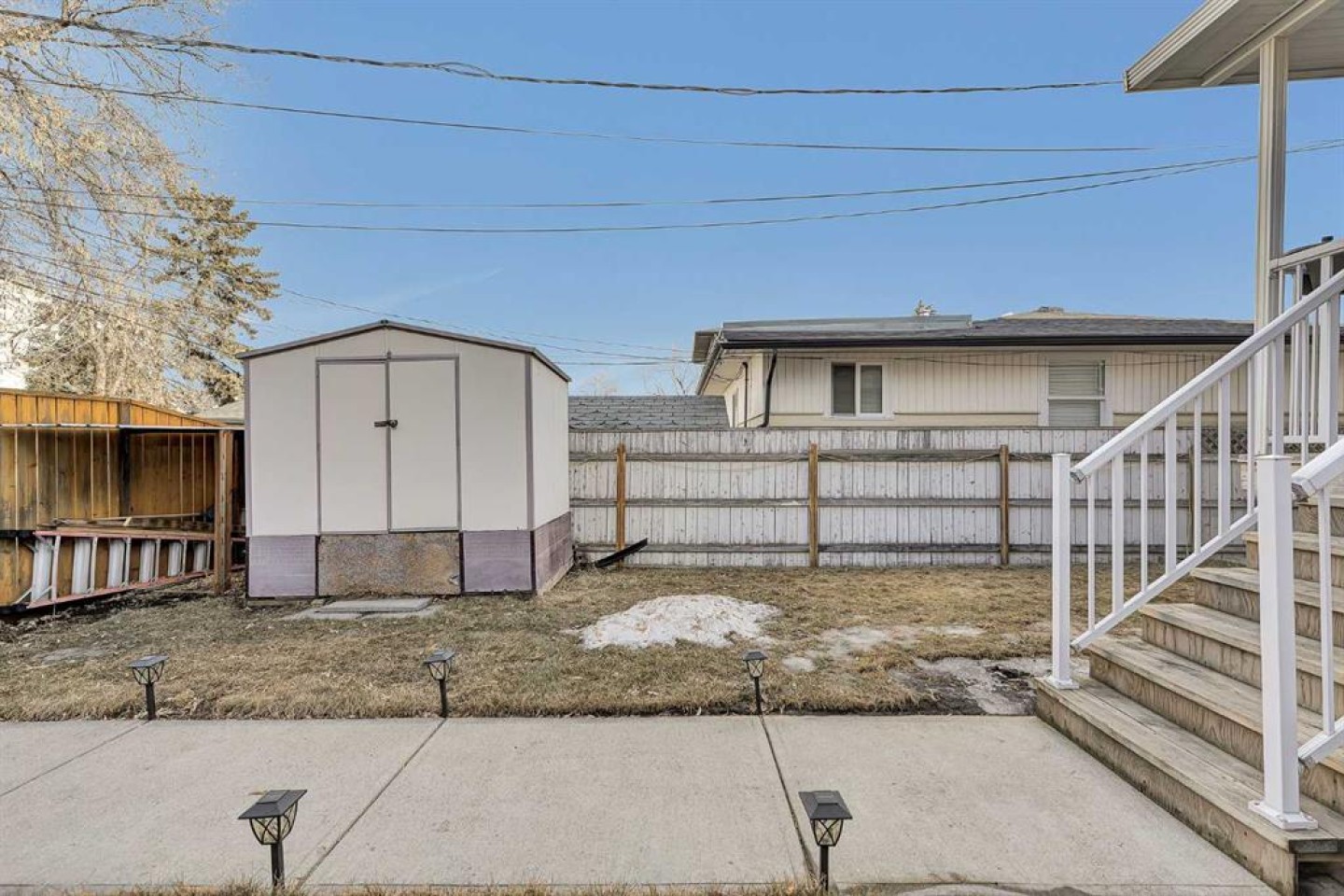 Storage shed. Ceiling fan and light combo on the main floor is "as is".