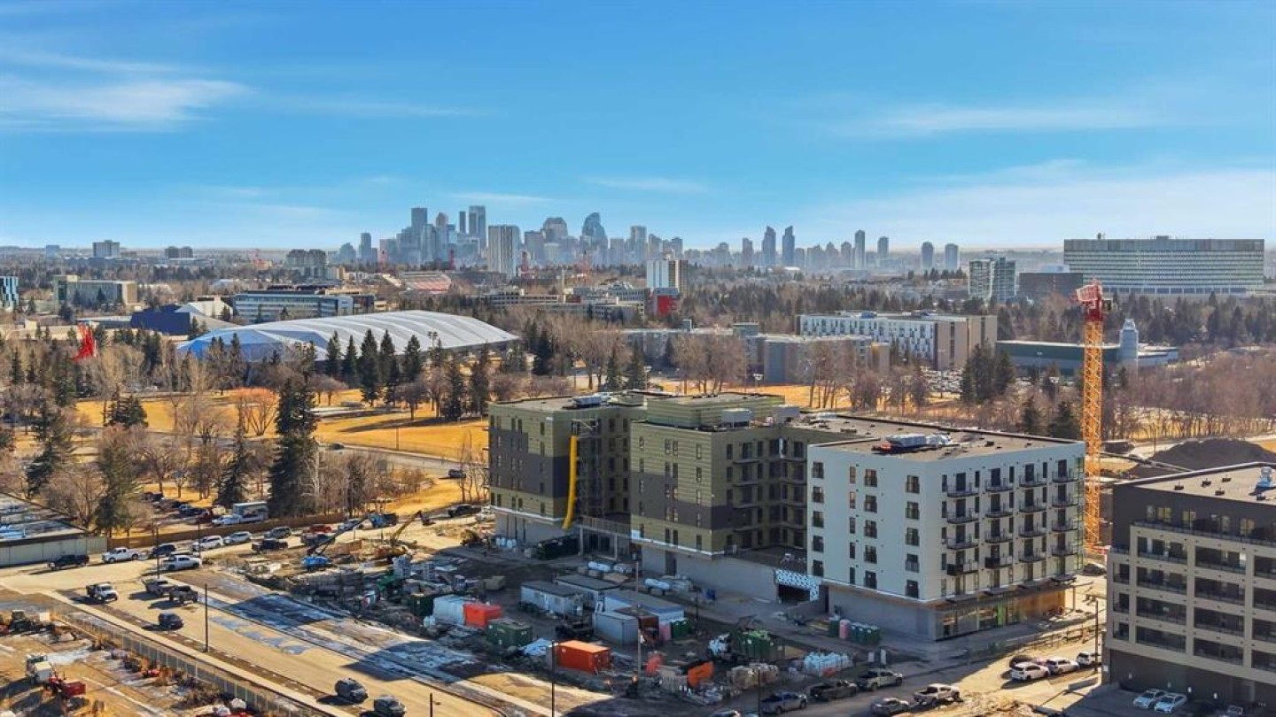 Built by Homes by Avi and Built-Green Registered, this beautifully designed A10 floor plan at Autumn in University District offers modern, efficient living with 1 bedroom, den, 1 bathroom, and a Juliette balcony. Thoughtfully crafted for comfort and functionality, the open layout features a bright kitchen and dining area that flows seamlessly into the living space, creating an inviting environment for both everyday living and entertaining. A cozy den just off the kitchen is a perfect work from home space. The well appointed bedroom with walk-in closet provides a peaceful retreat, complemented by a contemporary full bathroom and in suite laundry. Autumn’s architecture is defined by three distinct building profiles, giving the development a unique and contemporary presence. Residents enjoy an impressive collection of amenities, including a top floor owner’s terrace with BBQs, fire tables, and a community garden; a fully equipped fitness centre; a co work and entertainment lounge; and secure storage units conveniently located on every residential floor. Additional conveniences include a heated underground parkade, outdoor visitor parking, a secure main floor bicycle storage room with direct laneway access, and a dedicated bike/pet washing station. Located in the heart of University District, Autumn places you steps from Central Commons Park, the vibrant Retail Main Street, The University of Calgary and close to The Alberta Children’s Hospital, Foothills Hospital, Market Mall—offering unmatched walkability and year round lifestyle appeal. Fall in love with the A7 at Autumn, where smart design meets exceptional urban living.