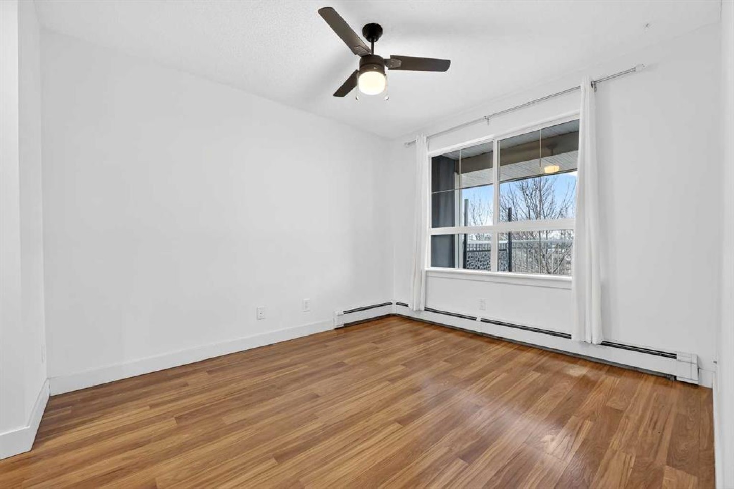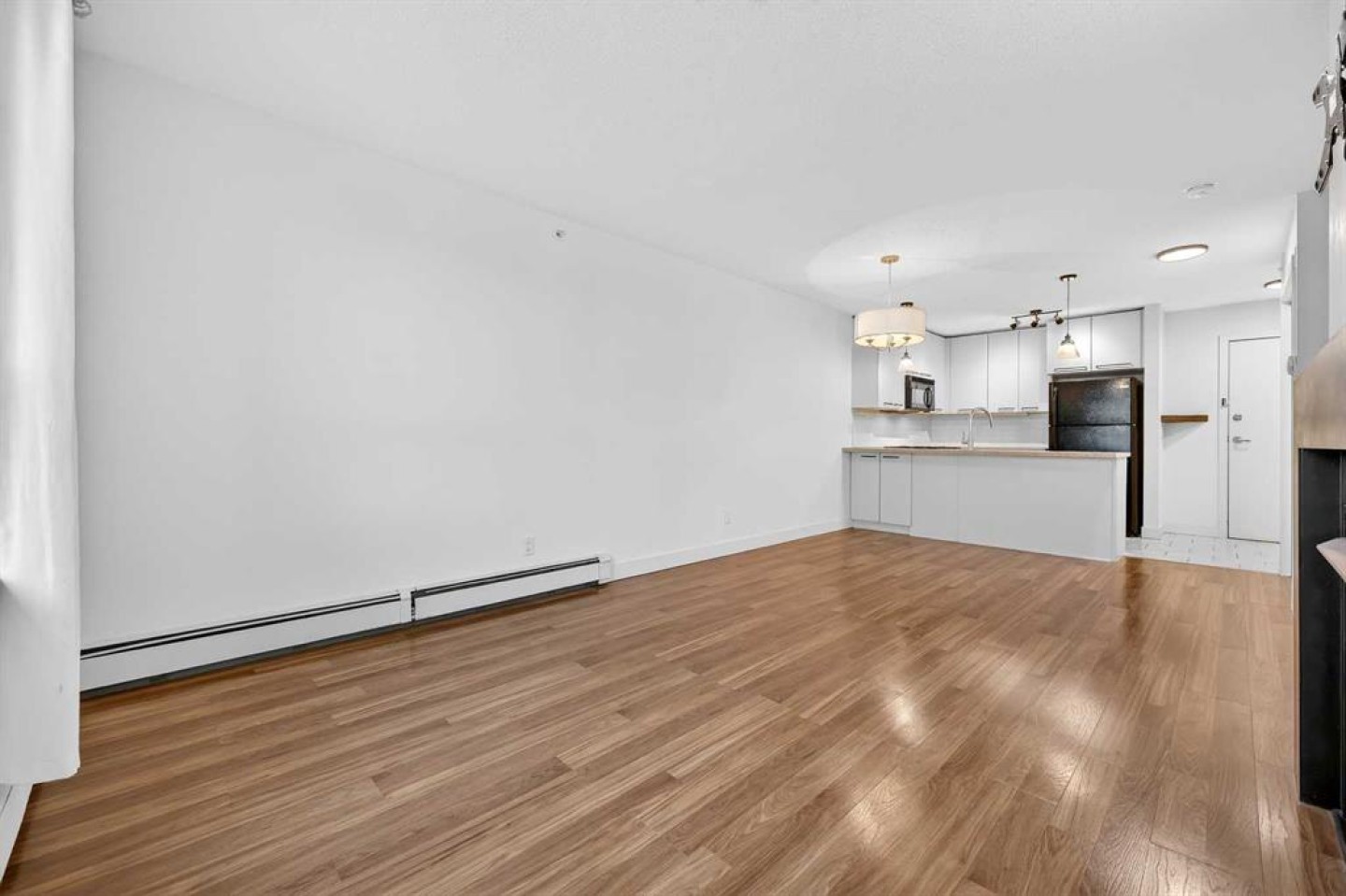 Bright open layout featuring a functional kitchen, spacious living area with cozy gas fireplace, in-suite laundry, full bathroom, and private balcony. Enjoy the added privacy and quiet of fourth-floor living with no neighbours above.