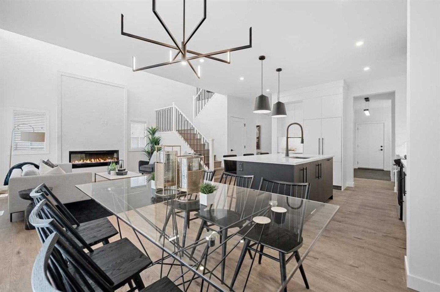 An attached triple car garage offers ample room for vehicles and storage. Located in the thoughtfully planned community of Dawson’s Landing, residents enjoy preserved wetlands, scenic walking paths, playgrounds, and convenient access to Chestermere’s schools, shopping, and lake lifestyle—all just minutes from Calgary.