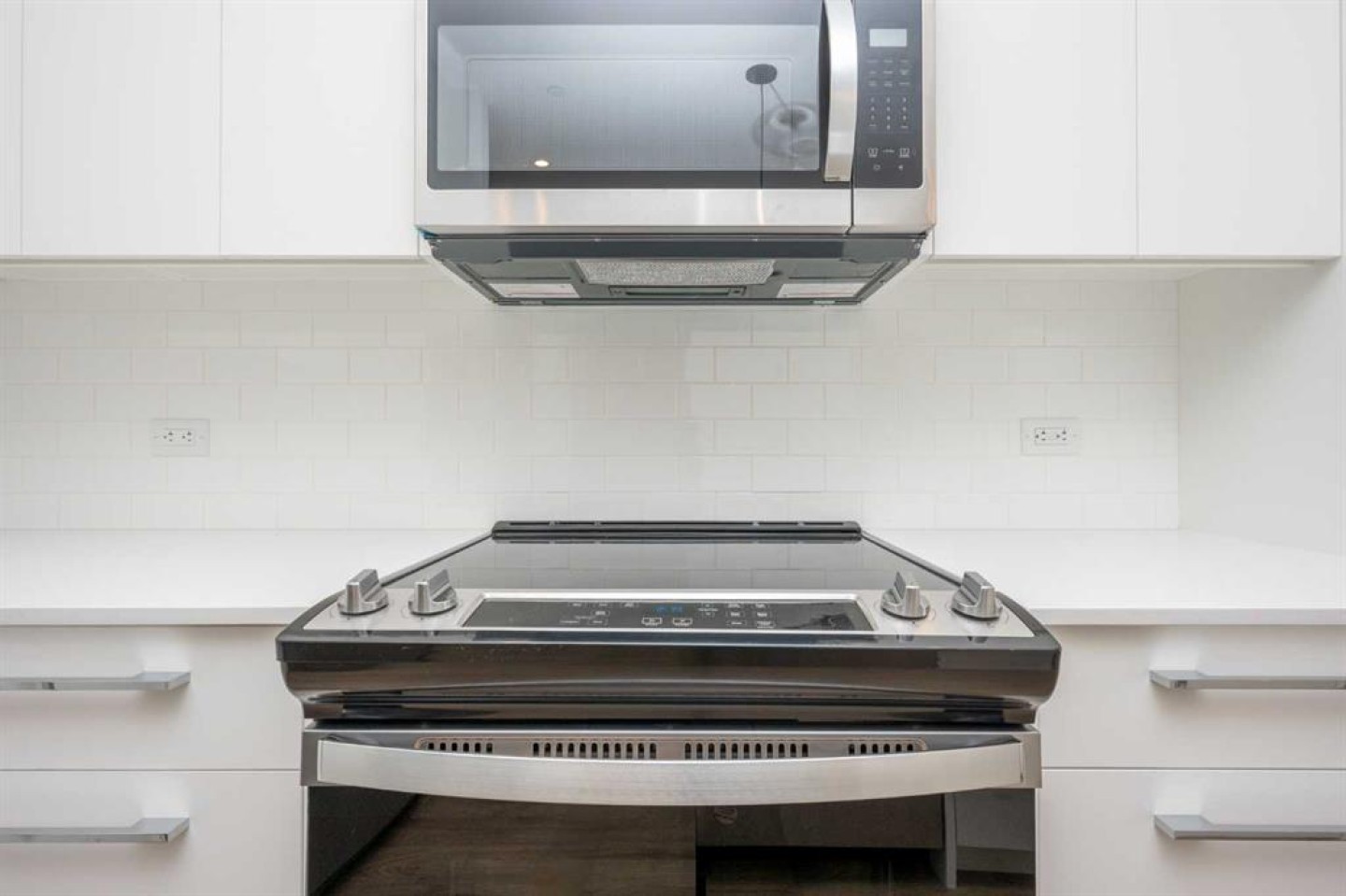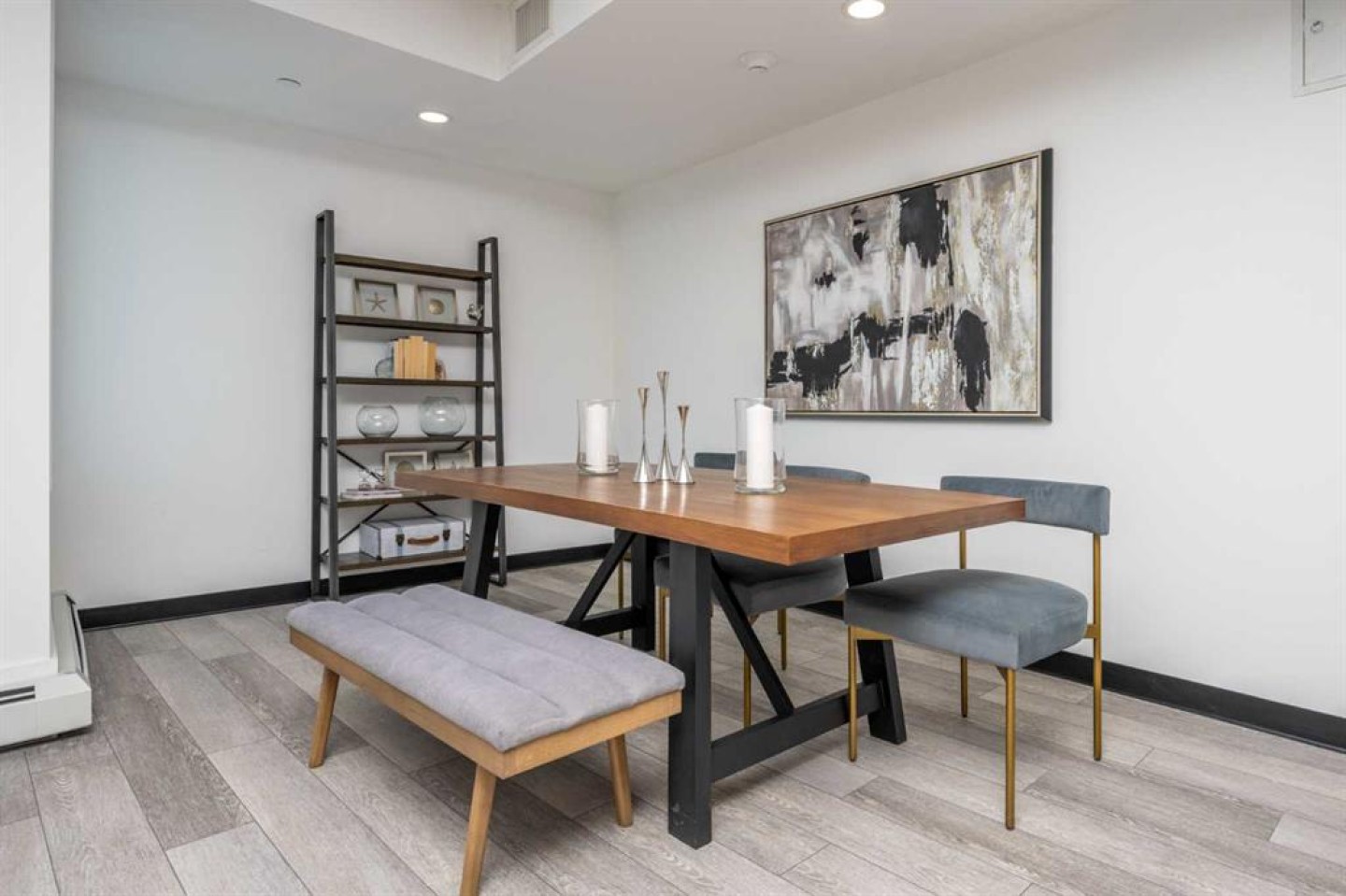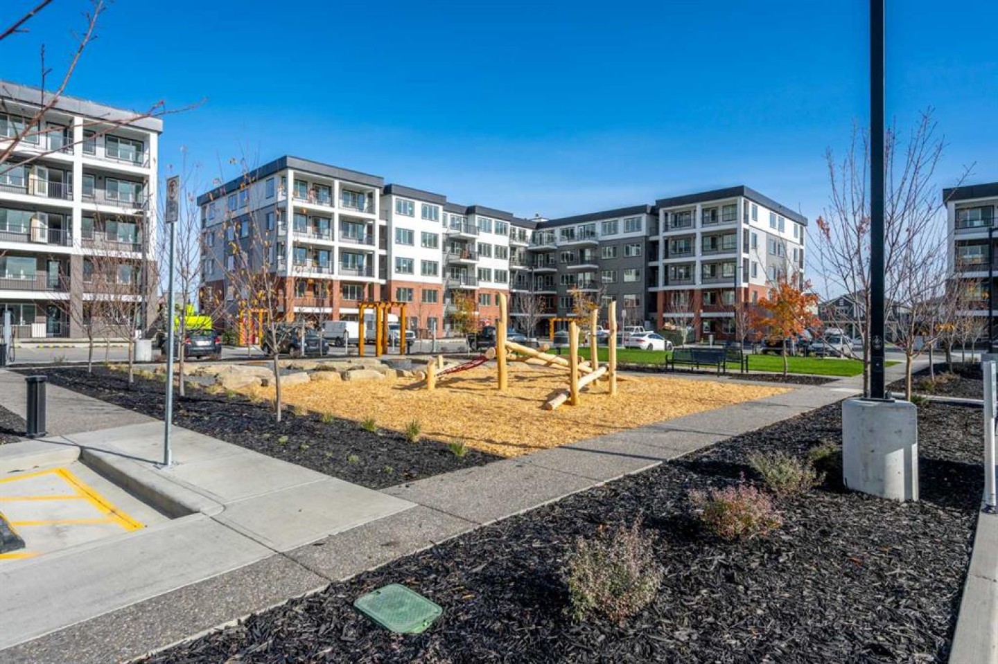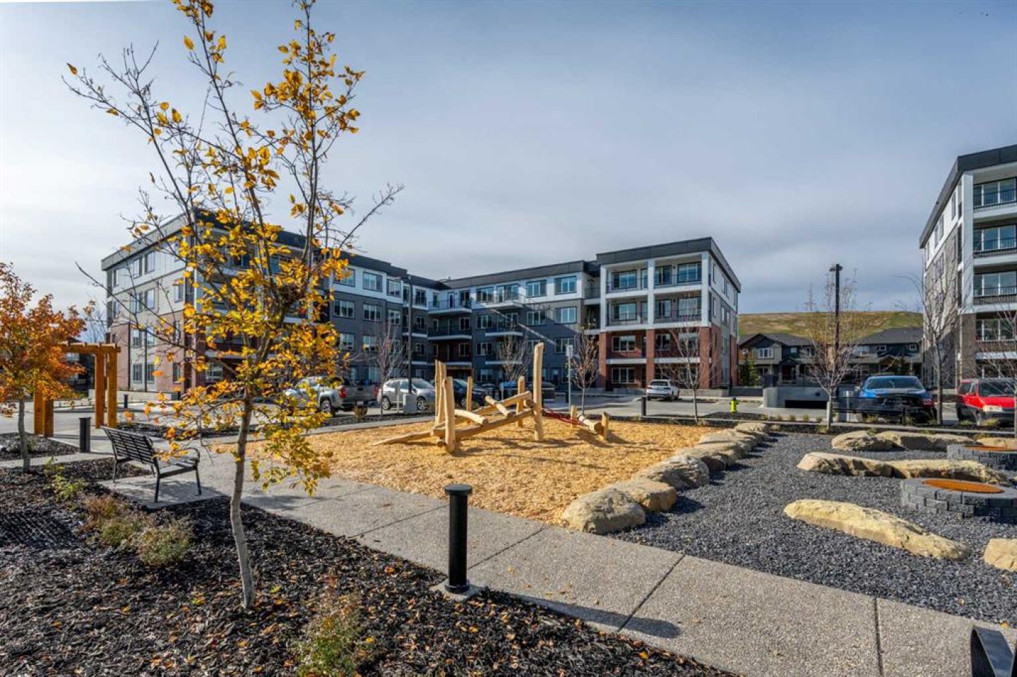 A modern ground-level 2 bedroom + den, 2 bathroom condo is located in the desirable community of Wolf Willow. The open-concept layout features luxury vinyl plank flooring, oversized windows, and a stylish kitchen complete with stainless steel appliances, quartz countertops, full-height soft-close cabinetry, and a spacious island.