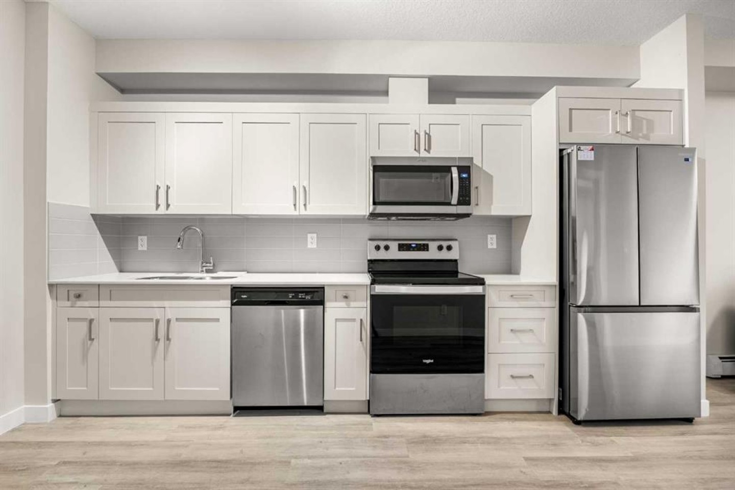 Welcome to this bright and functional 1-bedroom condo in the highly sought-after community of Sage Hill. With 9-foot ceilings and vinyl plank flooring throughout, this home perfectly blends style and comfort. The open-concept layout features a modern Kitchen with quartz countertops, stainless steel appliances, and ample cabinetry, flowing seamlessly into the spacious Living room. Step outside from the Living room to a large patio with gas hookup—perfect for summer barbecues, outdoor dining, or quiet evenings under the stars. The Primary bedroom offers excellent space with a convenient walk-through closet and cheater door to the 4-piece ensuite bathroom featuring quartz countertops. In-suite laundry adds everyday convenience. This unit includes a titled parking stall and assigned storage for your convenience. Low condo fees make this an ideal option for someone seeking value without compromise. A noteworthy feature of this building is the premium exterior, hail-resistant, and sound-dampening fibre cement siding. Located just steps from T&T Supermarket, Walmart, restaurants, and shops, with exciting new retail spaces under development nearby, bringing even more convenience and vibrancy to the community. Quick access to major highways like Stoney Trail makes commuting downtown, reaching the airport, or heading to the mountains simple and stress-free. This is a fantastic opportunity for anyone seeking a home that is move-in ready in one of NW Calgary's most desirable and growing communities!