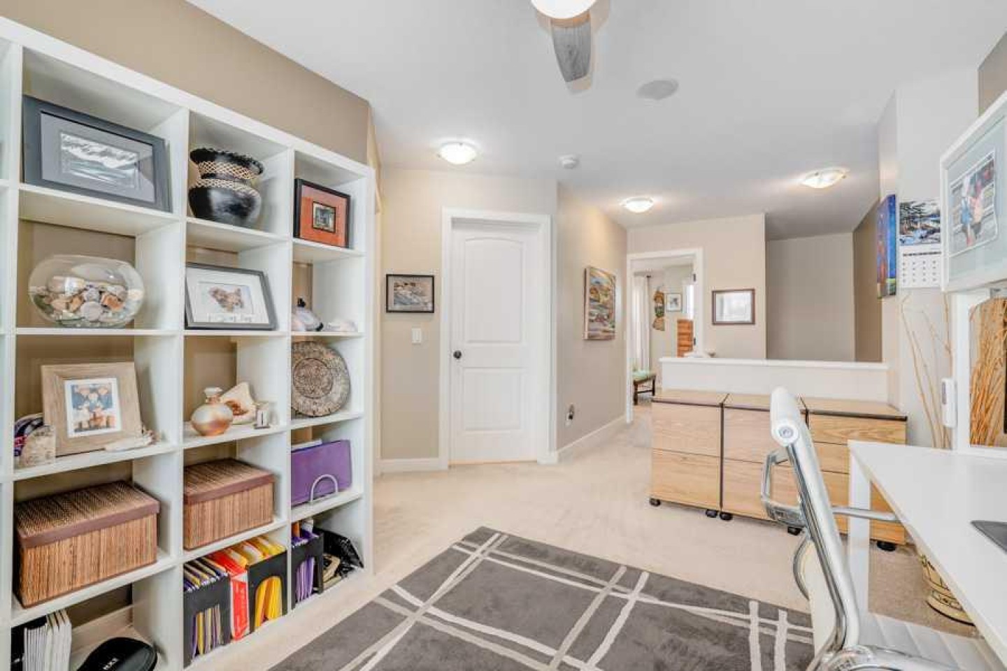 book shelves in basement , and shelving in office