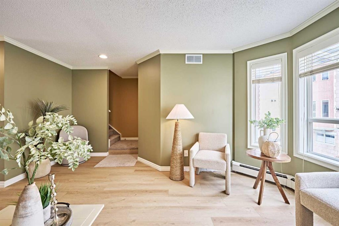 Welcome to The Terrace: An Inner-City Gem Overlooking the Park Experience the perfect blend of style and convenience in this stunning townhouse at The Terrace, ideally located in Calgary’s vibrant Beltline. With its dual primary bedroom layout, extensive upgrades, and a sun-drenched south balcony backing directly onto a park and playground, this home is a true urban retreat. // Main Level Charm: The spacious living room features a large bay window and a cozy free-standing gas fireplace. The open kitchen offers abundant counter space, sleek new countertops, and a generous breakfast nook—ideal for both everyday living and entertaining. //Private south-facing balcony: Step outside to oversized balcony with peaceful park views. This rare inner-city outdoor space is perfect for morning coffee, evening relaxation or chatting with friends. //Dual Master Retreats: Upstairs you’ll find two large bedrooms, each with its own ensuite bath—designed for comfort and privacy. A convenient laundry room completes the upper level. // Recent Upgrades & Peace of Mind: 1. Brand new premium STC-74 rated vinyl floors in the main floor 2. Plush new carpet throughout upstairs 3. Updated kitchen countertops & Moen bathroom faucets 4. Freshly painted walls & baseboards 5. Brand new hot water tank 6. Professionally upgraded boiler system (eliminates annual backflow inspection fee) // Unbeatable Location: With over 1,200 sqft of stylish living space, this home is steps from 17th Avenue’s shops, restaurants, and groceries, and just a short walk to downtown. One secure underground parking stall is included. // School Zone Advantage · Investment Potential:This property is located in the highly desirable Western Canada High School and Mount Royal School catchment area—and is within walking distance to both schools. Whether you are looking for a stylish home for your family or considering a smart investment in a top school district, this is an opportunity not to be missed. // Come to see this one-of-a-kind townhouse offering modern comfort, low-maintenance living, and an exceptional inner-city lifestyle.