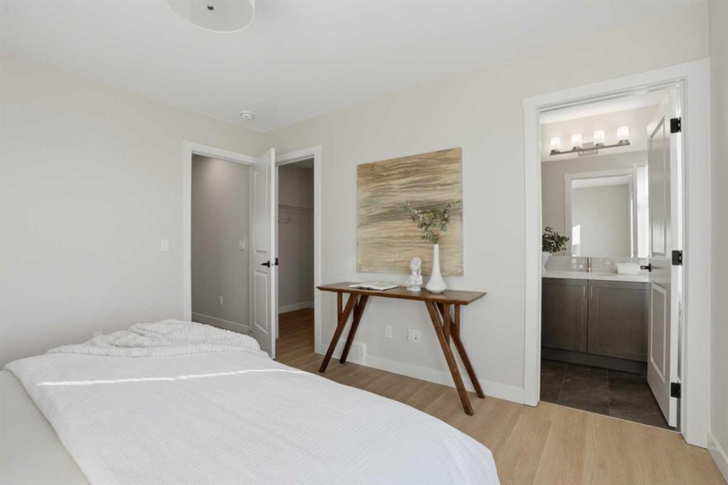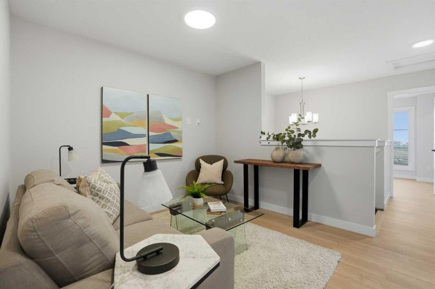 ** Brand New No Condo Fee Townhome Built by Genesis Homes ** Haley Model | End Unit | Move-in Ready | 3 Beds | 3.5 Baths | Double Attached Garage | Main Level Den/Office | Incredible Open Floor Plan | Top of the Line Finishes | Quartz Countertops | Designer Curated Backsplash | Full Height Cabinets | Builder Package Stainless Steel Appliances | Gas Line to Range | Walk-in Pantry | Wide Plank LVP Flooring | Sizeable Bedrooms | Upper Level Hall Laundry | Smart Automated Home | Balcony | BBQ Gas Line | Double Attached Garage | James Hardie Siding. This stunning Theo model by Genesis boasts 1,705 SqFt, 3 bedrooms, 2.5 bathrooms and a spacious open floor plan layout that’s perfect for families, professionals, or anyone who loves extra space. The front door opens to a main level foyer with closet space and a flex den. With large windows and high ceilings this space is space has the versatility to be an office space with a peaceful retreat for work or creativity. Head upstairs to the 2nd level to a grand floor plan both open and functional. The kitchen is outfitted with sparkling quartz countertops, ample cabinet storage, a gas line and a stainless steel builders appliance package. The centre island in the kitchen is equipped with a barstool seating area making it the perfect space to enjoy small meals and socialize while you cook. The walk-in pantry is a bonus to your dry good storage. The dining room paired with the kitchen makes for an easy stove to table transition. The spacious living room is the perfect area to unwind with your family in the evenings and is ideal for hosting guests. Just off the living room is a door to your private balcony with a gas BBQ line for those summer cook outs! This level holds a bedroom and 4pc bath. The uppermost level is complete with 2 bedrooms, 2 full bathrooms and hall laundry. The primary bedroom is a personal retreat with a deep walk-in closet and private 4pc ensuite bath with a deep tub/shower combo. Bedroom 3 is a great size with its own walk-in closet and beside this bedroom is the 4pc bath with a single vanity and tub/shower combo. The upper level laundry is a treat as its located near all the bedrooms. The double attached garage secures you 2 year round secured parking and space for seasonal storage. Located just moments from essential amenities and nestled close to a picturesque park, you’ll enjoy easy access to shops, dining, and outdoor activities. Take in breathtaking mountain views and sunsets as you stroll by the serene pond. Genesis Builders Group follows the First-Time Home Buyer GST/HST Rebate to eliminate the 5% GST on qualifying new homes (up to $1 million) for qualifying first time home buyers. Hurry and book your showing at this gorgeous Genesis home today!
