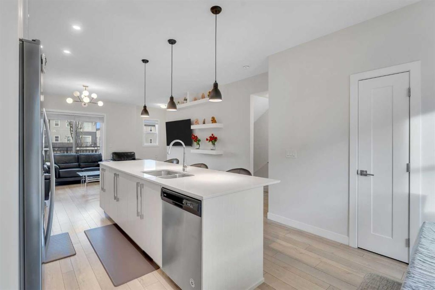 Excellent location in a sought-after community! Welcome to this beautifully maintained 3-bedroom, 2.5-bath townhouse with a versatile main-floor den that can easily serve as a 4th bedroom or home office. This park-facing unit is a true community highlight, showcasing pride of ownership with numerous upgrades throughout. The open-concept main floor offers 9' ceilings, abundant natural light, and a modern kitchen with stainless steel appliances. Enjoy the convenience of a double car garage and low condo fees. Impeccably kept and move-in ready—this home looks and feels like brand new. Don’t miss the chance to own one of the best-kept homes in the area!