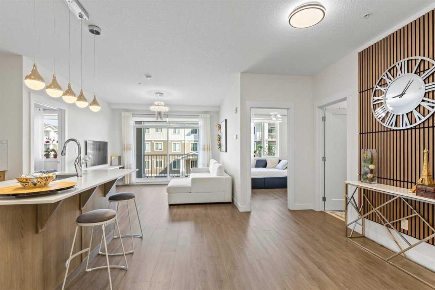 Welcome to your stylish oasis in the heart of Cranston – where modern living meets everyday convenience! This beautifully upgraded unit offers the feel of new construction without the price tag, and it’s just a 5-minute walk to scenic Cranston Ridge with quick access to the Bow River valley. Step inside to a spacious entryway that flows into a bright, open-concept living area. The heart of the home is a stunning kitchen featuring over $15,000 in upgrades – including sleek quartz countertops, modern stainless steel appliances, pendant lighting, and a HUGE island with seating for four. Durable vinyl flooring adds both beauty and function throughout the main space. Enjoy the privacy of a smart split-bedroom layout, with the primary suite boasting a large walk-in closet, dual sinks, upgraded shower, and extra cabinet storage. Big windows fill the space with natural light, and the living room opens directly to a large balcony – perfect for relaxing or entertaining. It also includes a titled parking stall just steps from the entrance. Ideally located near shopping, dining, and nightlife in the Seton commercial district. You're minutes from the Seton YMCA, South Health Campus, and six golf courses within a 10-minute radius. Whether you're an outdoor adventurer or a city dweller, this location truly offers it all!