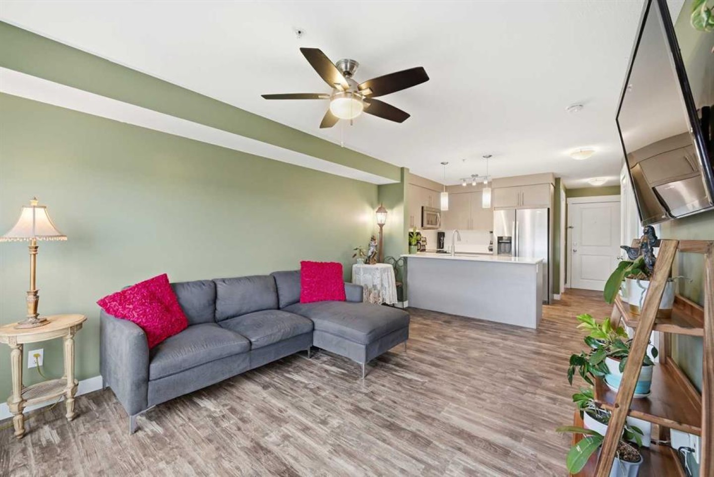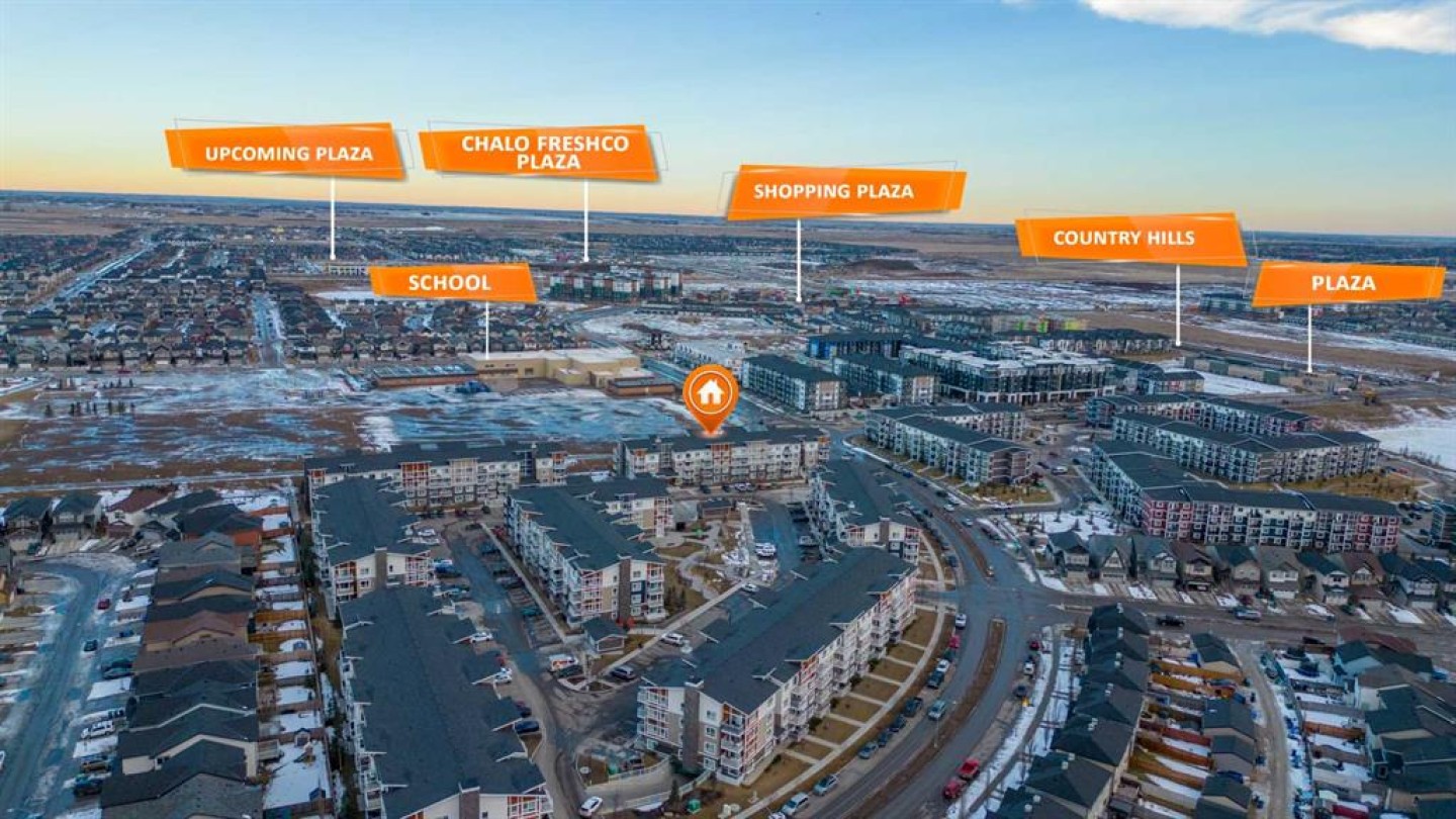 Welcome to this 2 bedroom unit in "Orchard Sky" in Skyview Ranch Overlooking Greenspace. Get amazing value in this gorgeous and well-maintained second-floor unit. This unit features a modern open concept design with large windows for lots of natural light. 1 titled parking stall, a spacious kitchen which boasts quartz counter-tops, tiled back-splash, and stainless-steel appliances, 4pc bathroom. In addition, the unit features patio doors that leads to a patio over Looking green space for them perfect summer evenings. Walking distance to public transit, playgrounds, schools, shopping, dining and easy access to major traffic routes in Calgary. You don't want to miss this opportunity to own this amazing property.