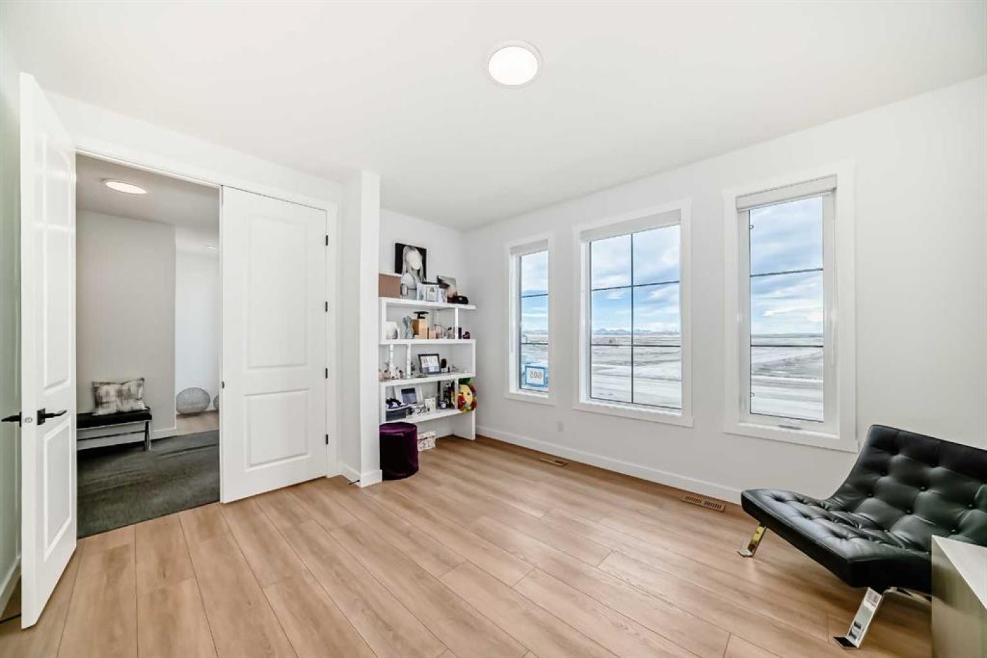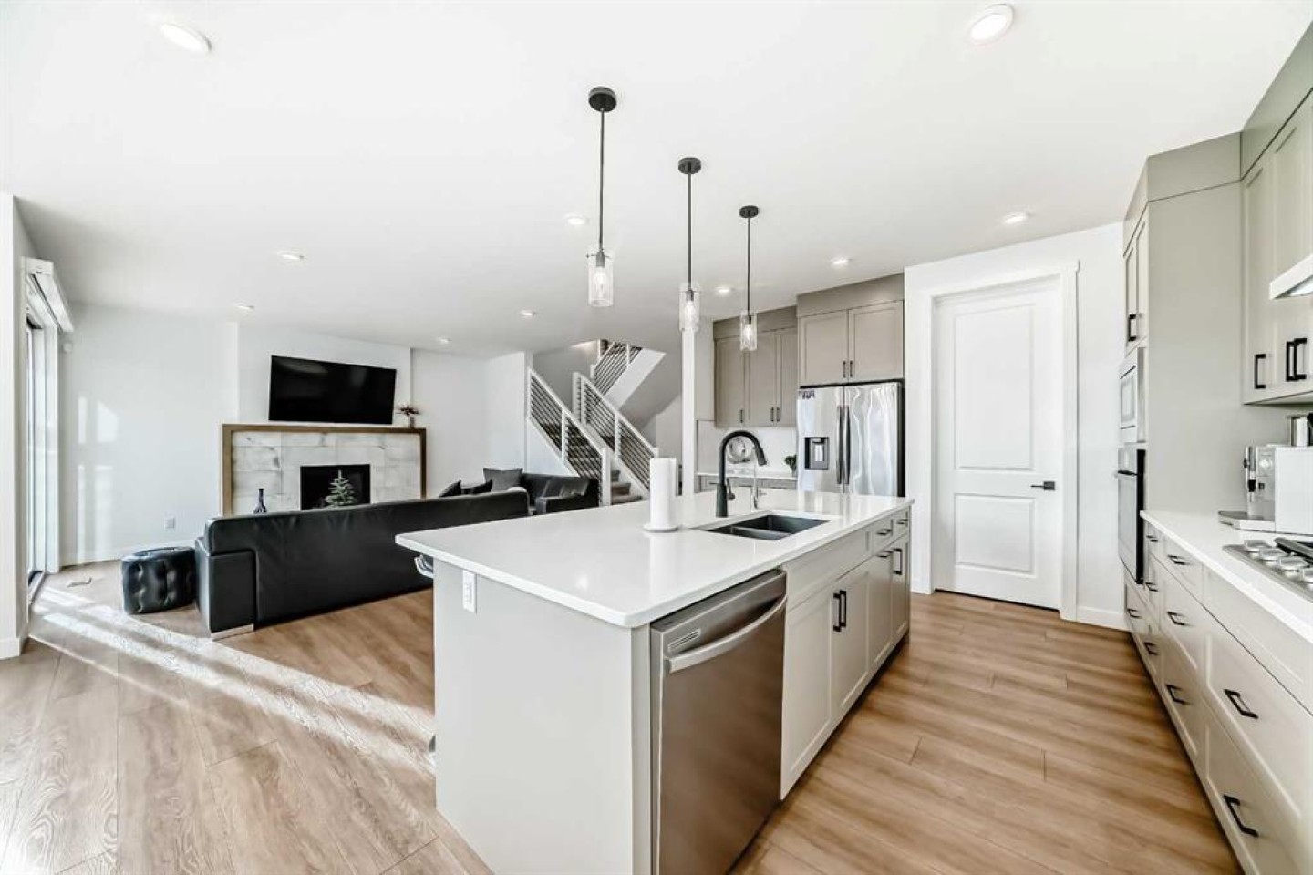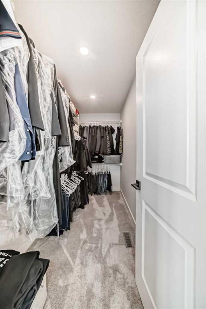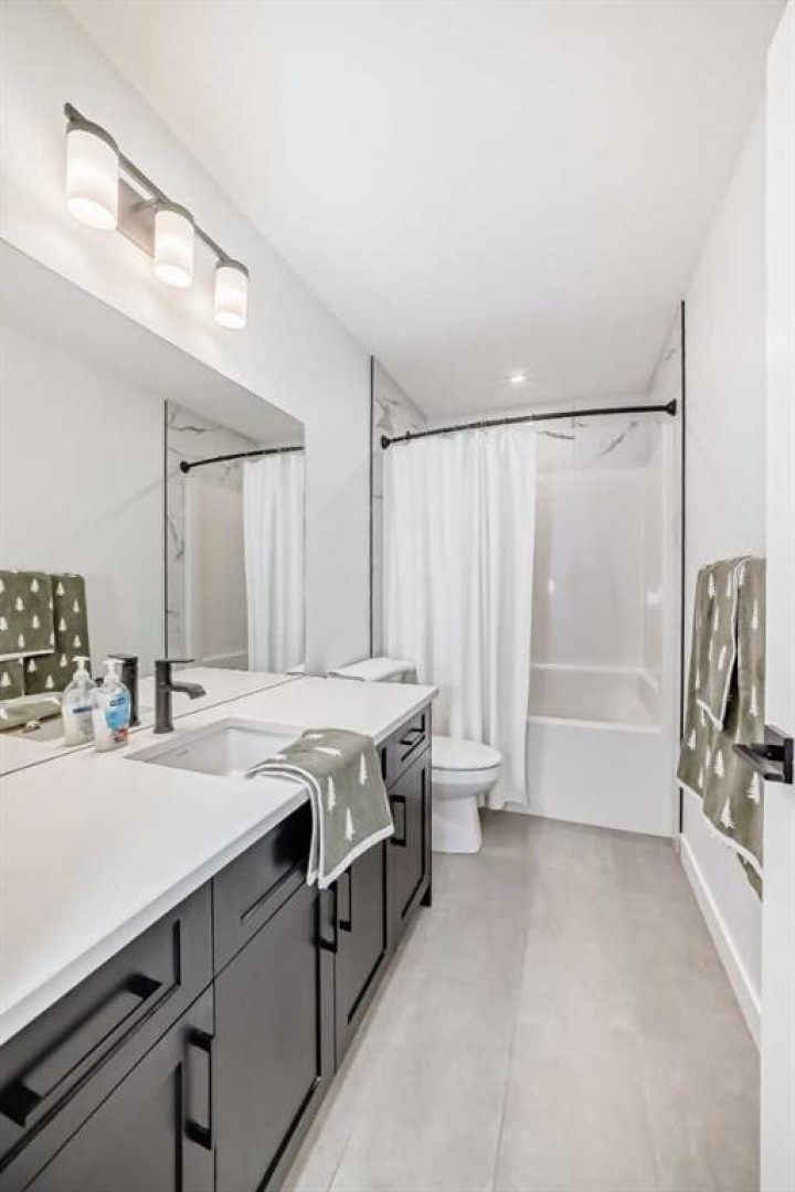 Upstairs, the thoughtful layout continues. The primary bedroom is a true retreat, featuring a luxurious five-piece ensuite with dual vanities, a freestanding tub, a separate shower, and a spacious walk-in closet. A comfortable upper-level family room creates the perfect space for movie nights or quiet downtime. Two additional well-sized bedrooms, each with their own walk-in closets, share a modern four-piece bathroom—ideal for families of all sizes.